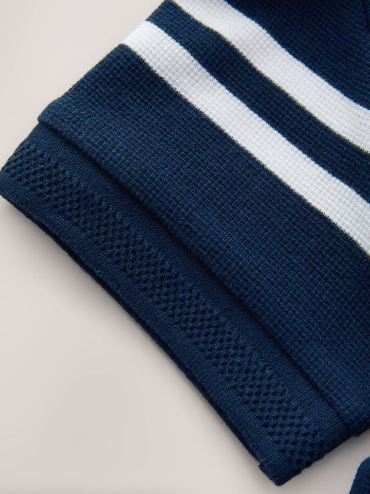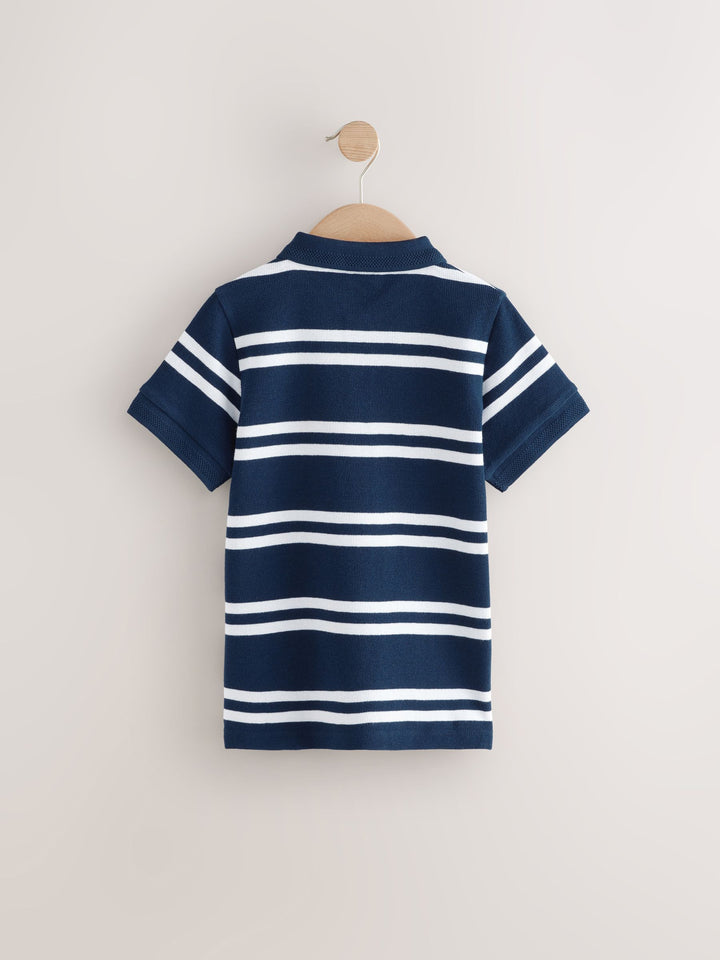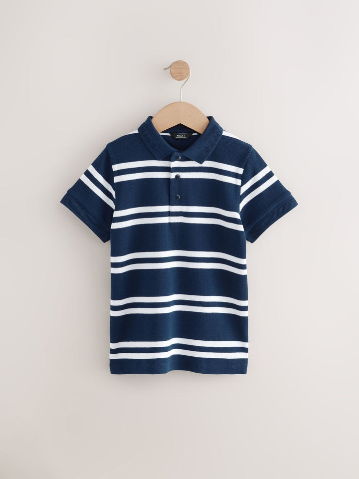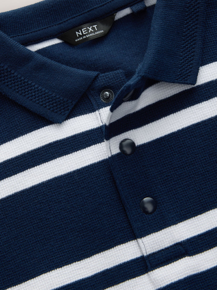 Navy/White Stripe Textured Short Sleeve 100% Cotton Polo Shirt (3-16yrs)
