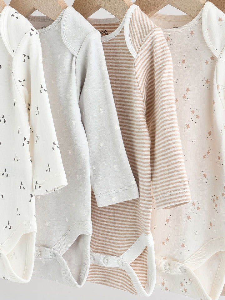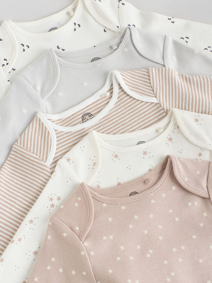 Neutral 100% Cotton Long Sleeve Baby Bodysuits 5 Pack
