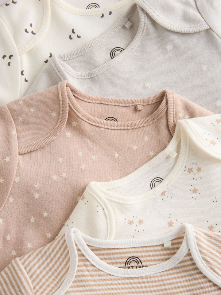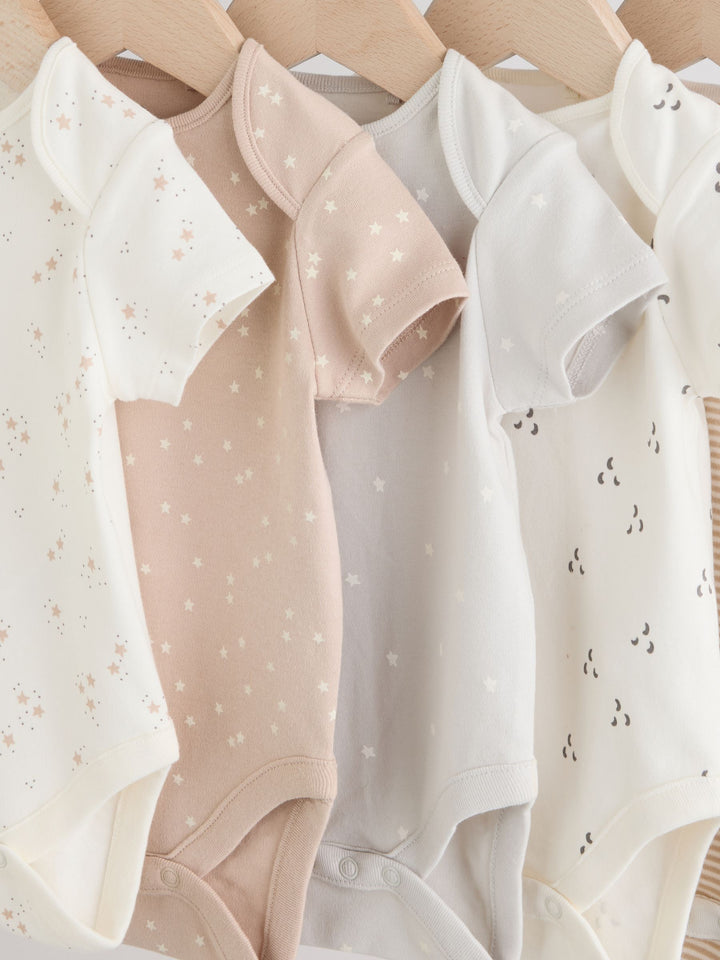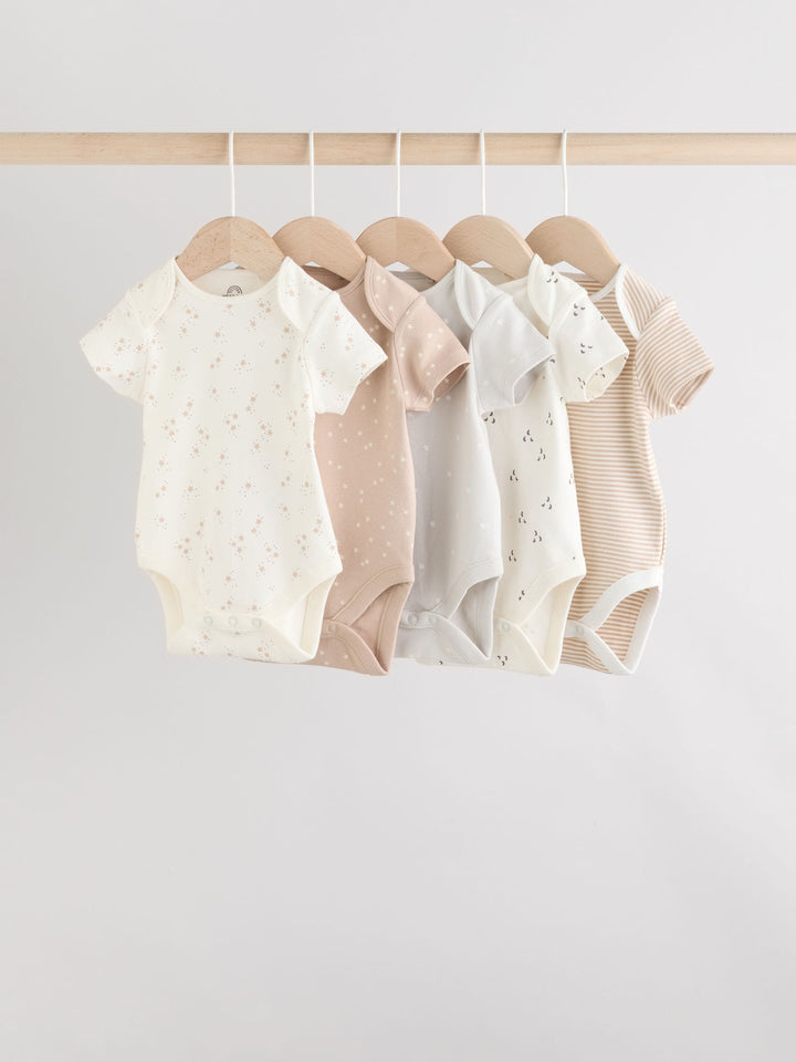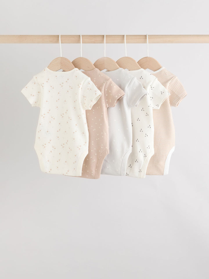 Neutral 100% Cotton Short Sleeve Baby Bodysuits 5 Pack