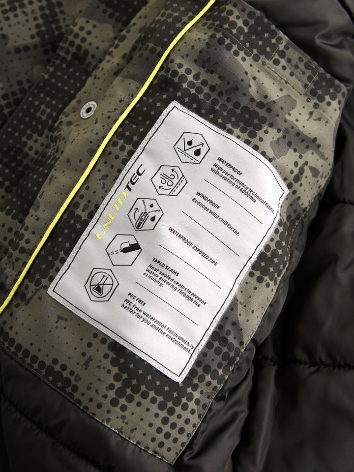 He'll love how stylish and functional this Neutral Abstract Camo heavyweight jacket is, with a waterproof and windproof outer boasting taped seams, a chest pocket, dual side pockets and a zip-up fastening with a plain placket, finished with a sleeve cuffs. Also boasting reflective tape on the pocket and sleeve to help them stand out on dark nights. Heavyweight Zip fastening Plain placket Waterproof and windproof Taped seams Multiple pockets Machine washable. Main 100% Recycled polyester. Lining 100% Recycled polyester. Wadding 100% Recycled polyester. Country of Origin: Myanmar