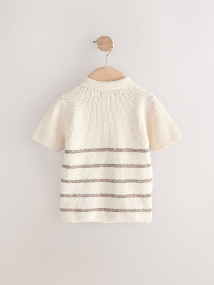 Neutral Bear Button Neck Knitted 100% Cotton Polo Shirt (3mths-7yrs)