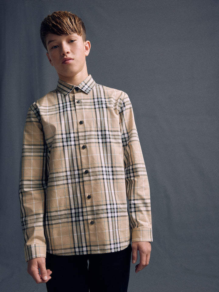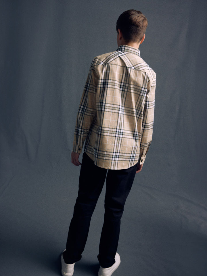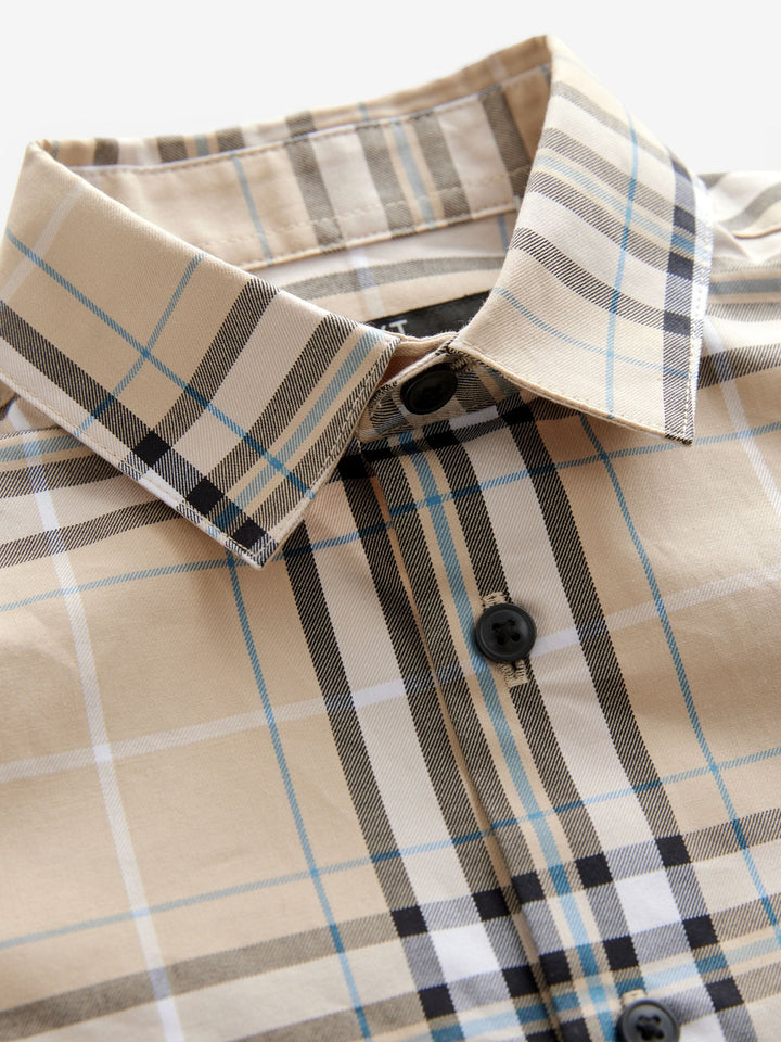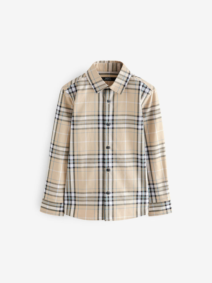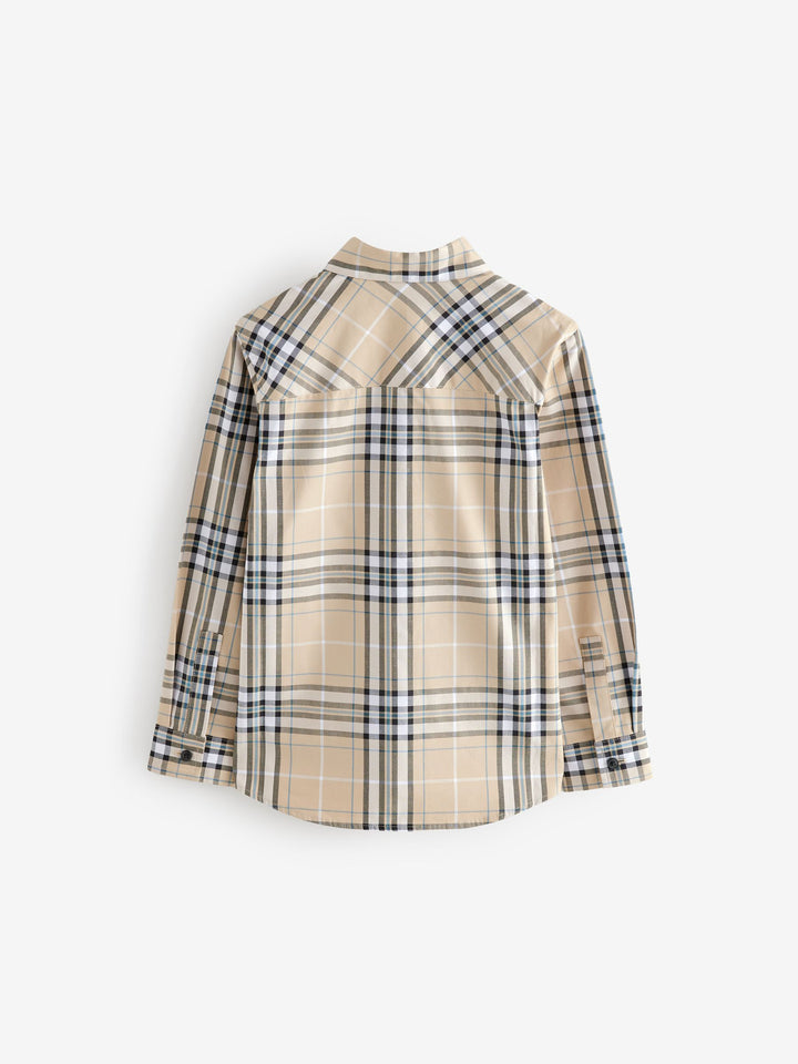 Neutral Check Long Sleeve 100% Cotton Shirt (3-16yrs)