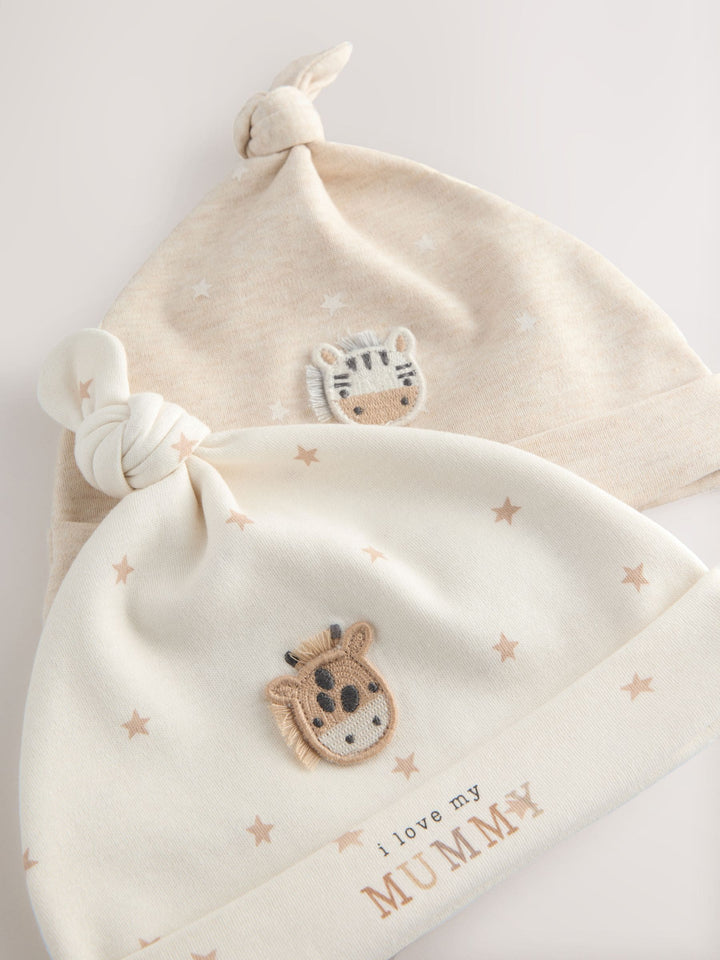 Neutral I Love My Mummy/Daddy Baby Tie Top Hats 2 Pack (0-6mths)