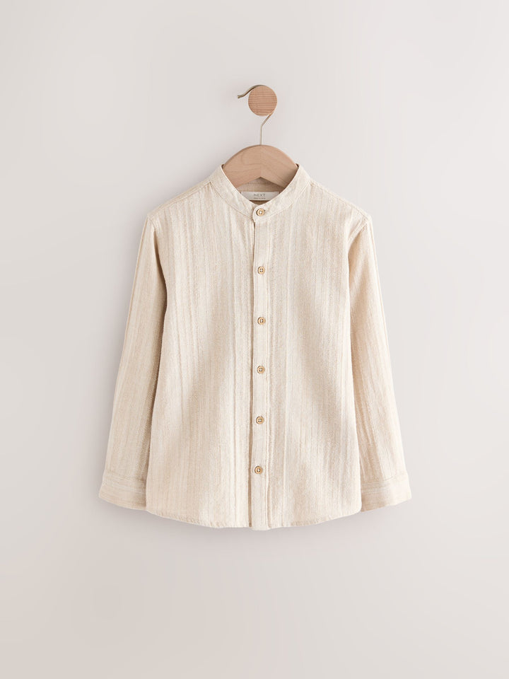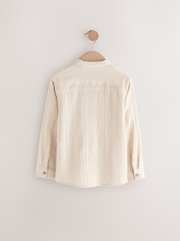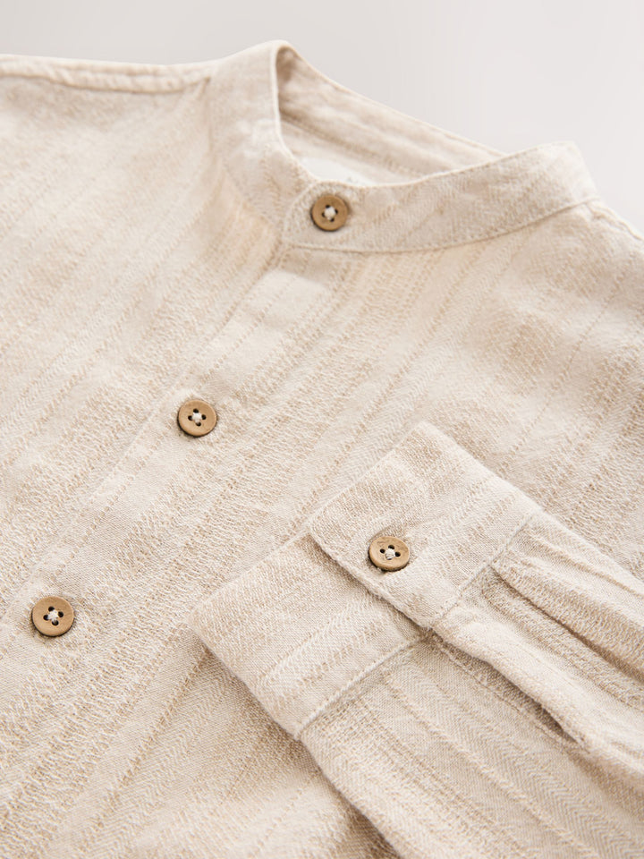 Neutral Long Sleeve Grandad Collar Cotton/Linen Mix Texture Shirt (3-16yrs)