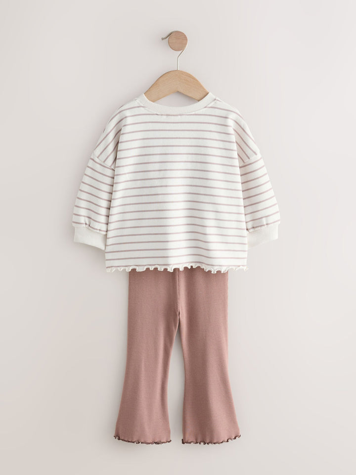 Dress her in playful charm with this fun long sleeve top and flare set, perfect for comfortable casual wear and family days out. The top features a cute print, perfectly paired with on-trend flared trousers that include a decorative lettuce hem flare. Long Sleeve Top Flared trousers with lettuce hem flare Comfortable casual wear design Playful and fun style Machine washable. T-shirt 100% Cotton. Leggings 95% Cotton, 5% Elastane. Country of Origin: Bangladesh