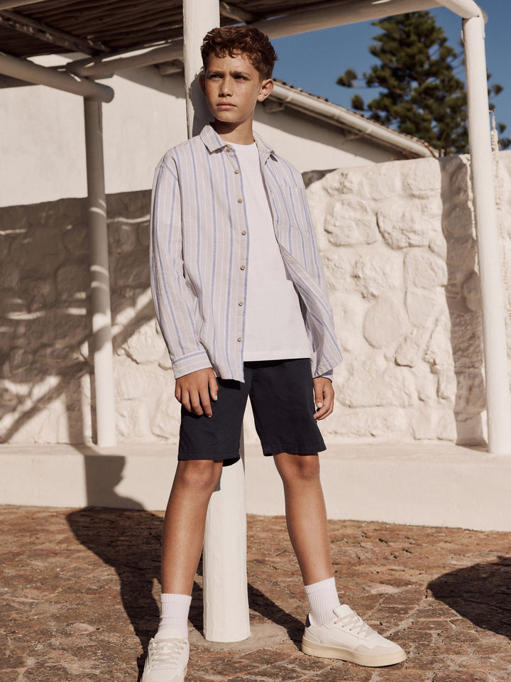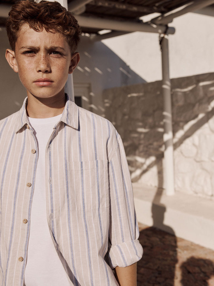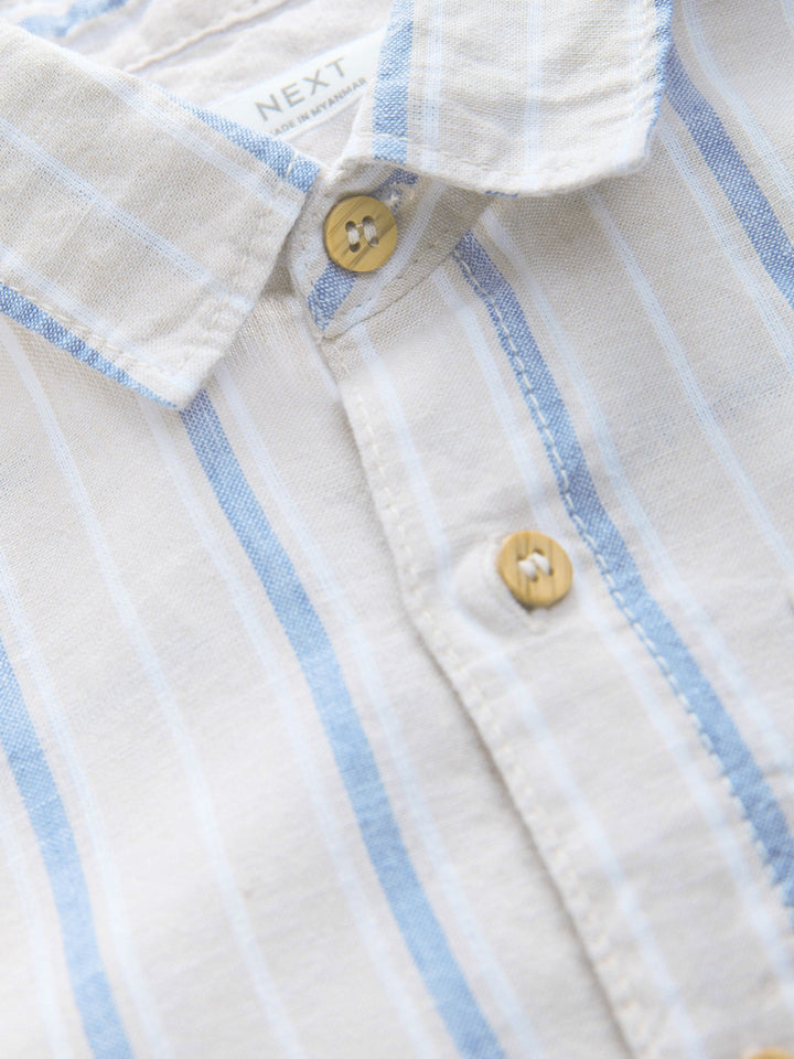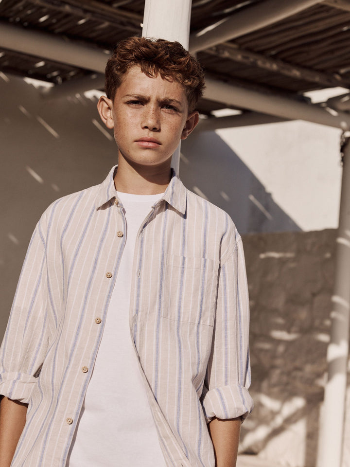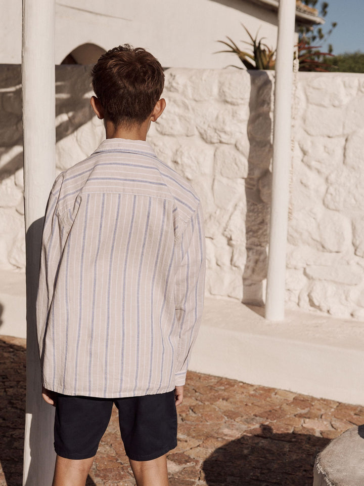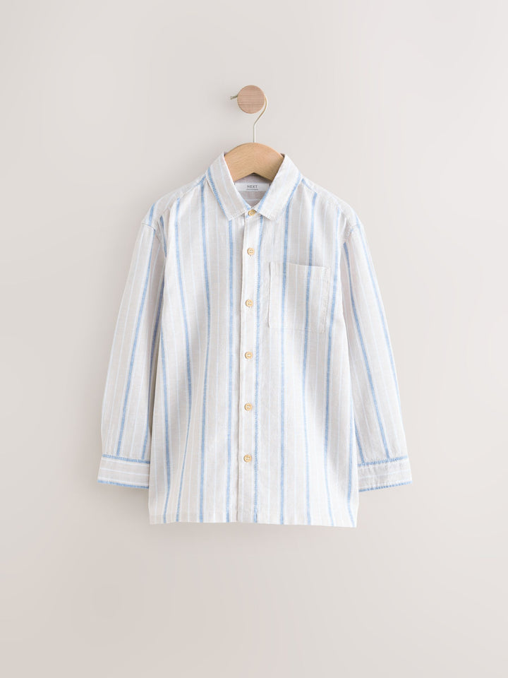 Neutral Stripe Long Sleeve Linen Mix Relax Fit Shirt (3-16yrs)