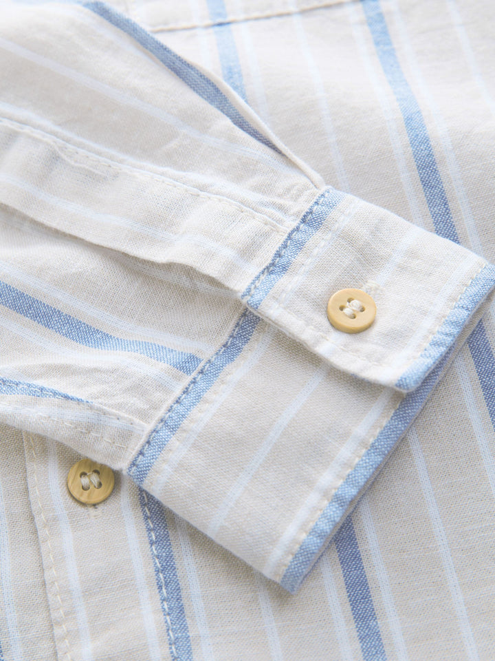 Soft, stylish and breathable, this linen and cotton-blend neutral stripe long sleeve shirt is ideal for the spring and summer, cut to a relaxed fit with a button-down fastening, a smart collar and a single chest pocket. Relaxed fit Linen and cotton blend Button-down fastening Smart collar Chest pocket 55% Linen, 45% Cotton. Country of Origin: Myanmar