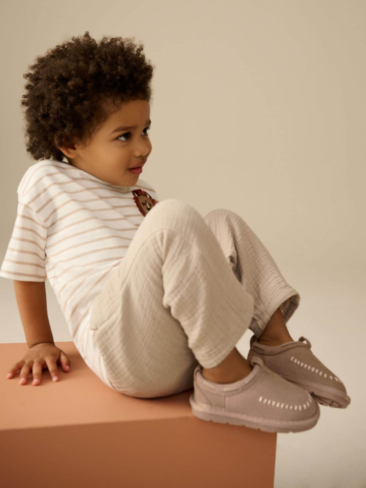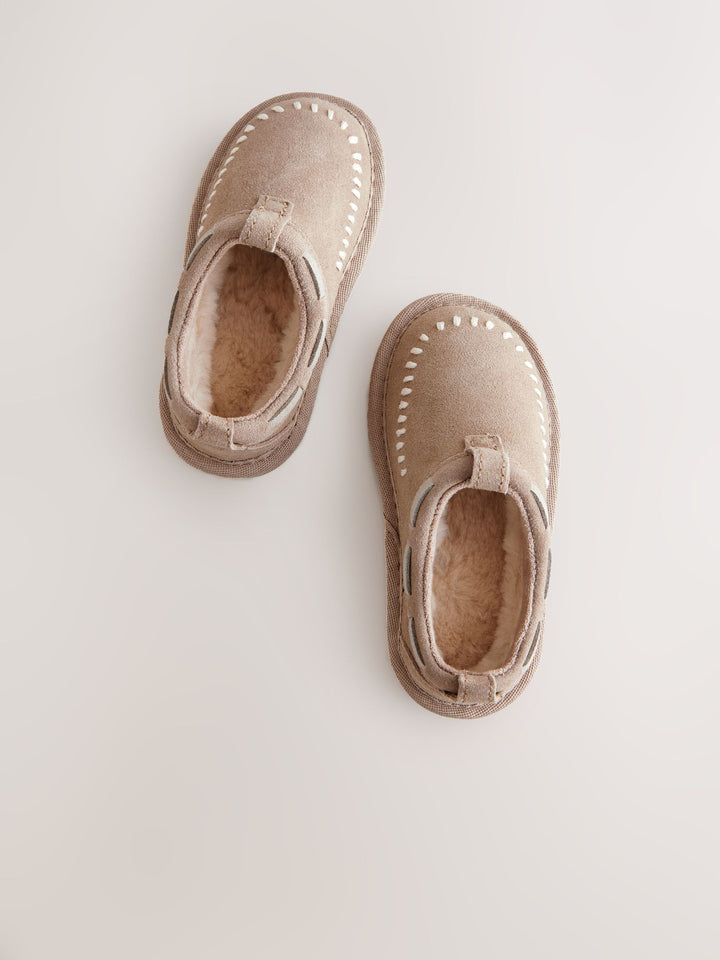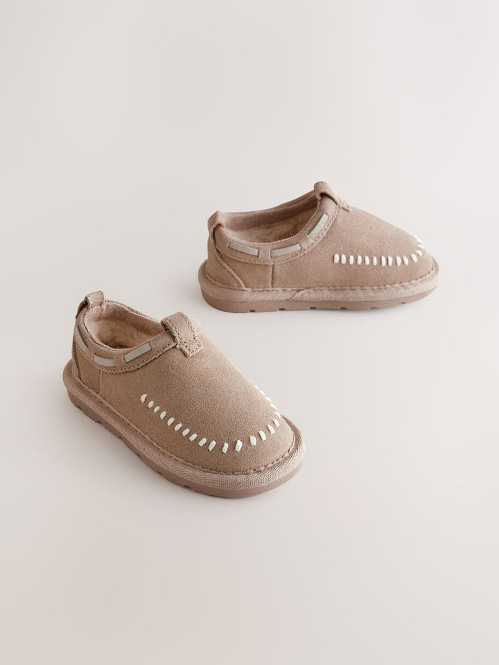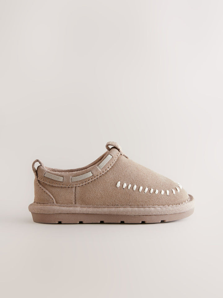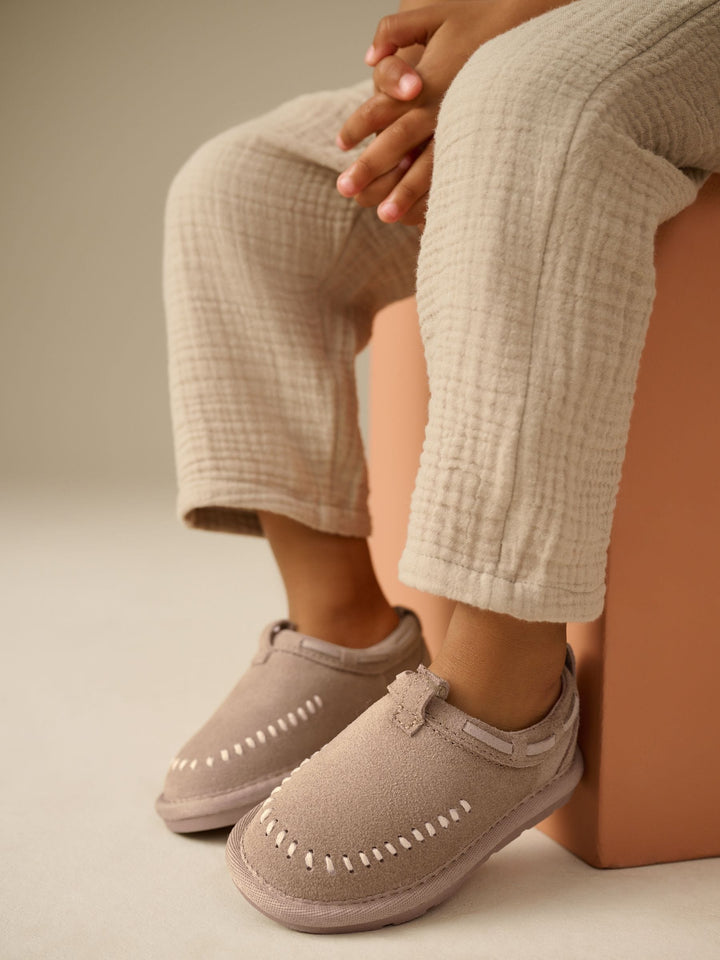 Neutral Suede Stitch Mules