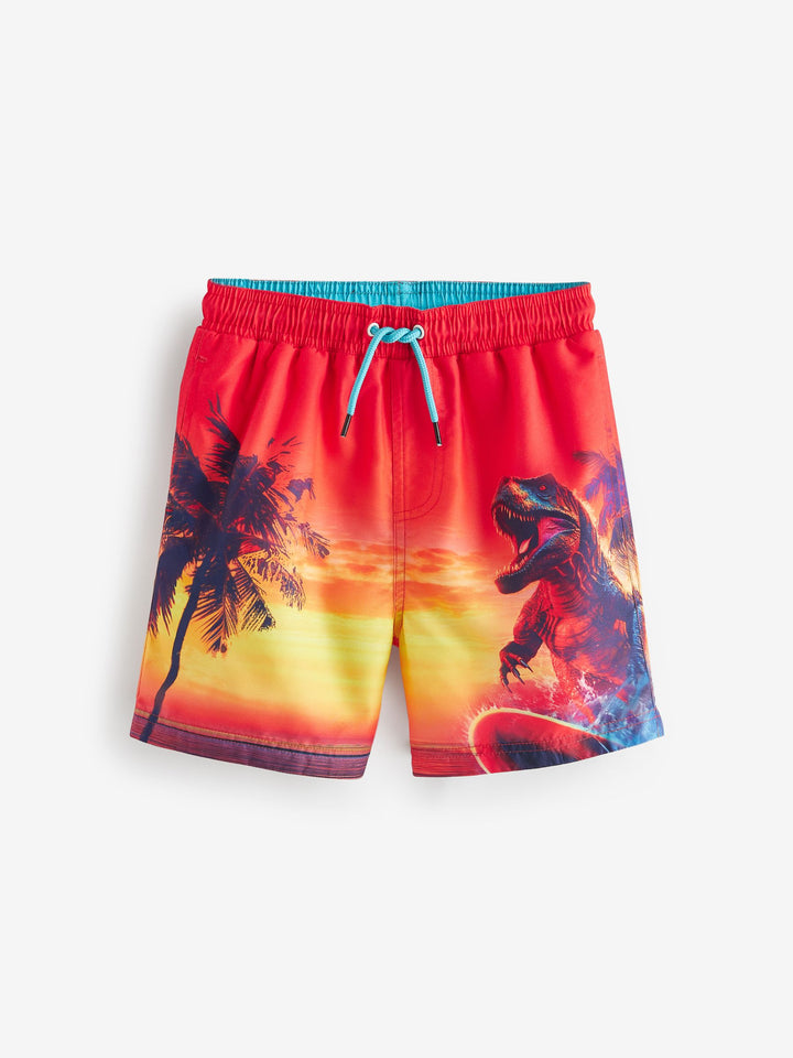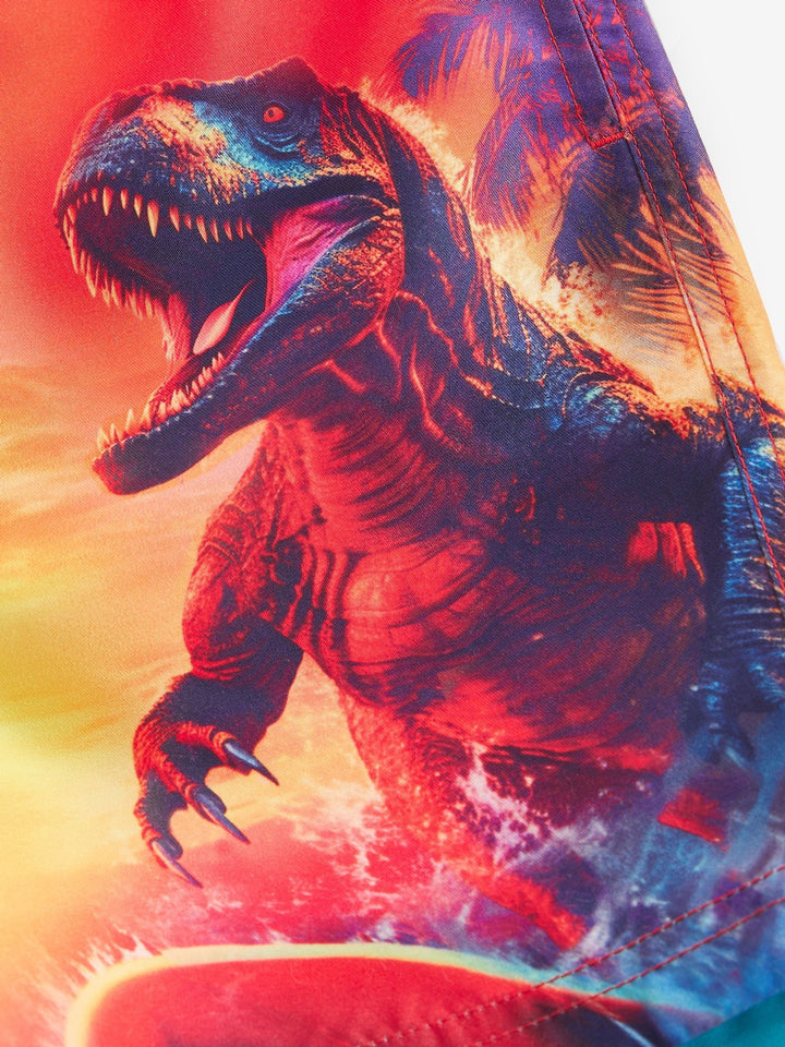 Orange Dino Printed Swim Shorts (3-16yrs)