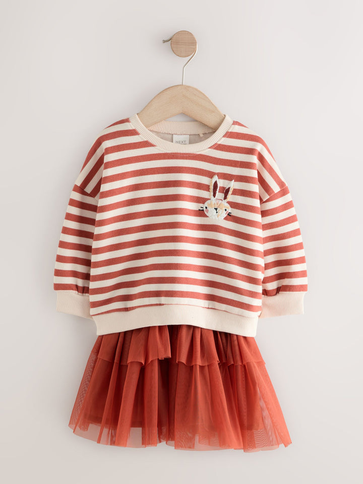 Orange Striped Long Sleeve Top and Skirt Set (3mths-7yrs)