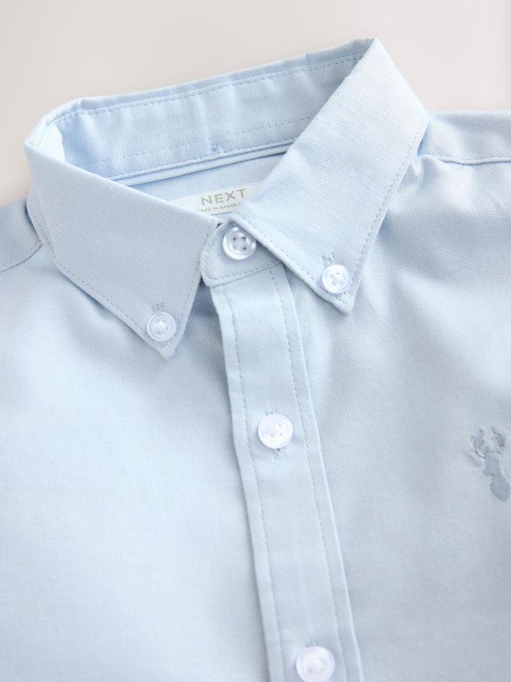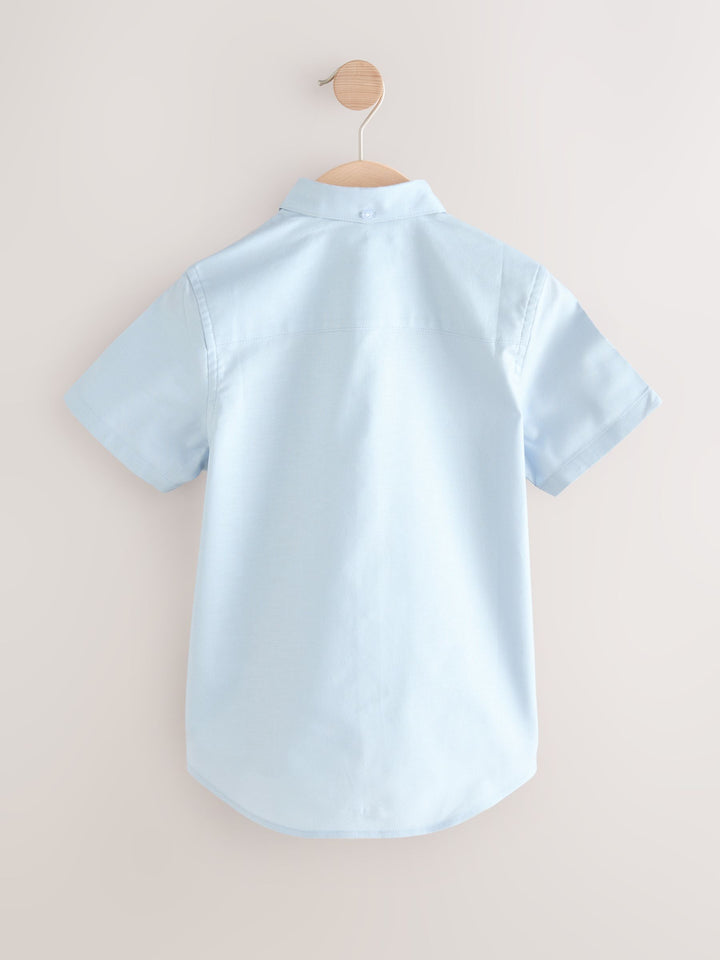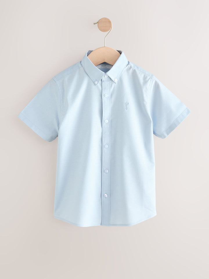 Pale Blue Logo Short Sleeve Cotton Rich Oxford Shirt (3-16yrs)