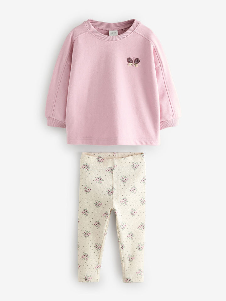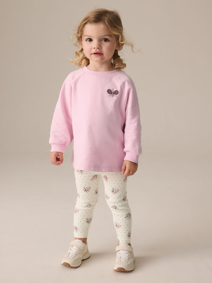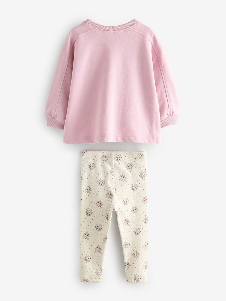 Pale Pink Floral Long Sleeve Top and Leggings Set (3mths-7yrs)