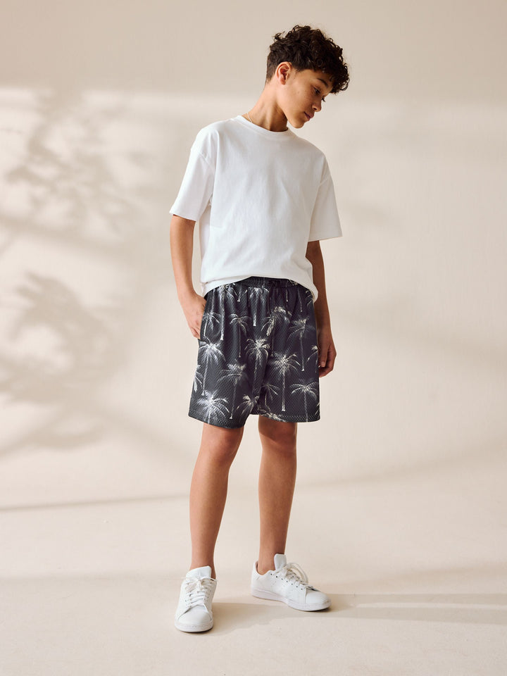 Palm Black/White Mesh Sport Shorts (3-16yrs)