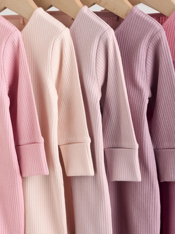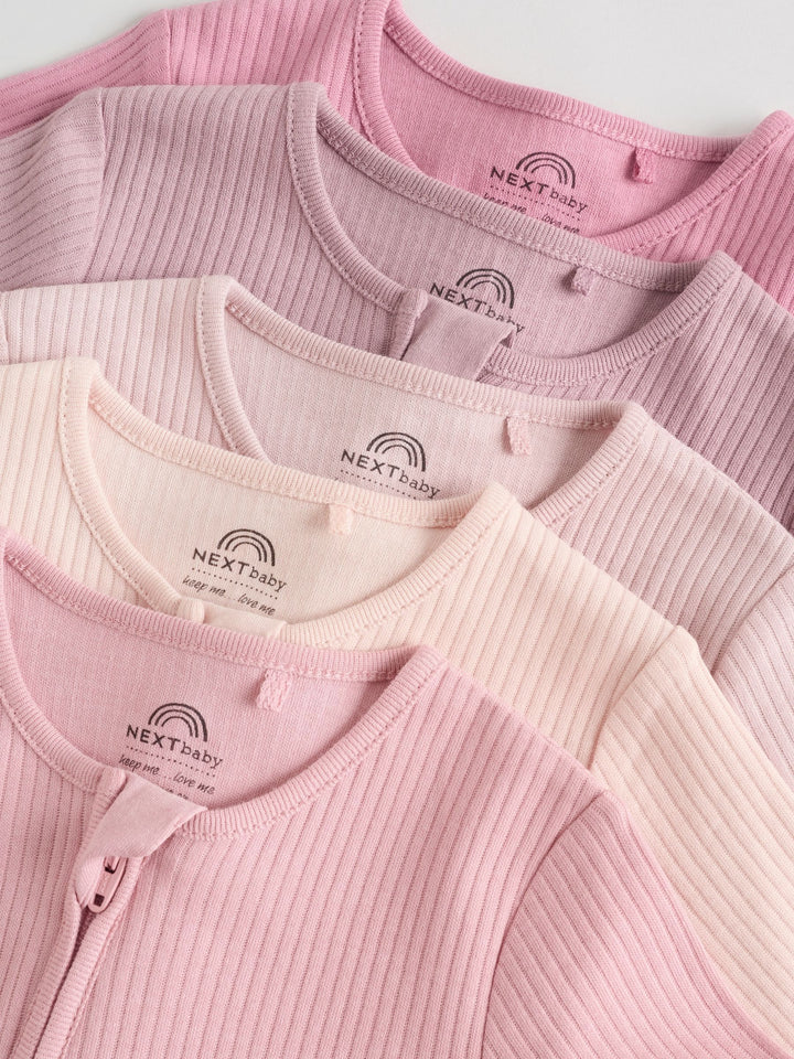 Pink 5 Pack Two Way Zip Baby Footless Sleepsuits (0mths-3yrs)