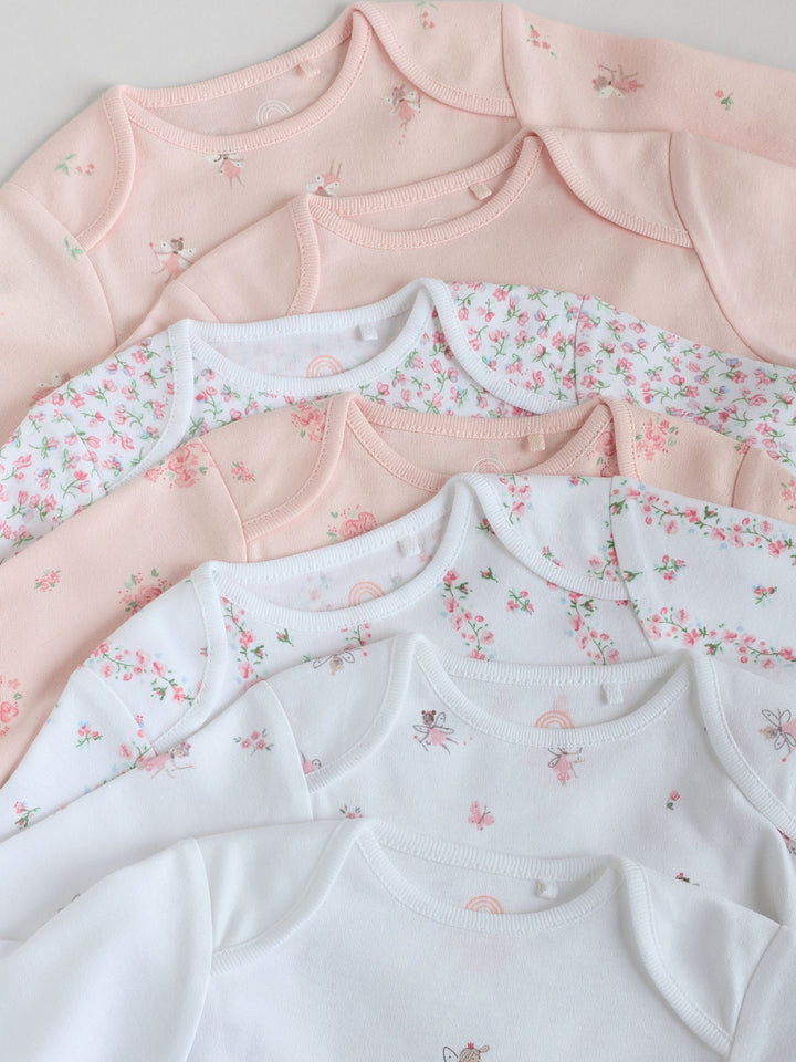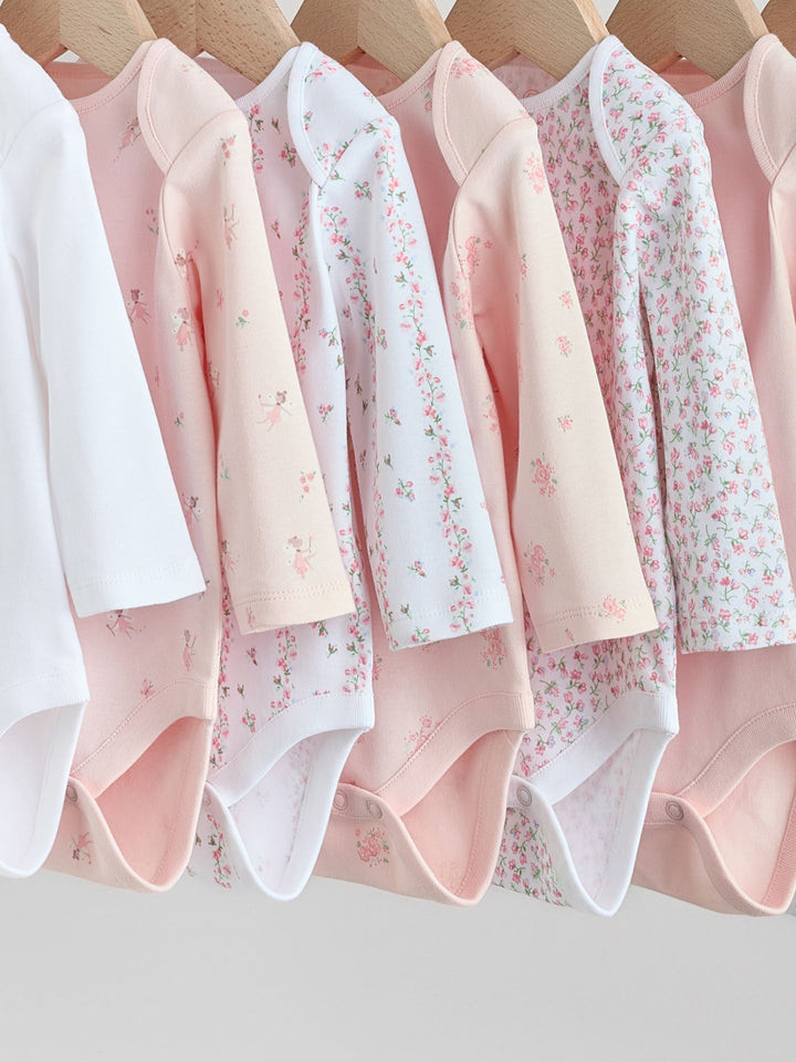 An essential foundation for the layette, this versatile Pink 7 Pack Long Sleeve Baby Bodysuit set offers exceptional comfort and value. Crafted from Super Soft Cotton, these bodysuits are gentle on skin. Designed for ease, they feature an Envelope Neck Opening and a Popper Bottom Fastening with Nickel free poppers to help protect against irritation to delicate skin. 7 Pack Bodysuits Super Soft Cotton Envelope Neck Opening Popper Bottom Fastening Nickel free poppers help to protect against irritation to delicat Machine washable. 7 x Bodysuit 100% Cotton. Country of Origin: India Warning: Keep away from fire and flames.