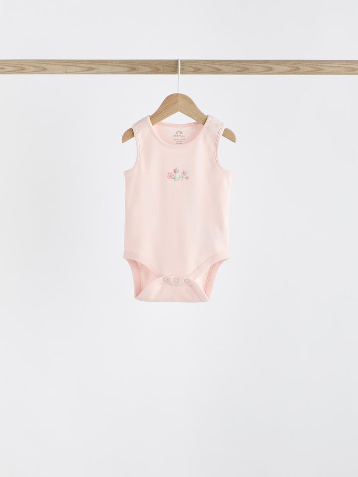 Designed in soft and breathable cotton, our pink bunny 5 pack of vests are sleeveless to make warm days more comfortable. Free from harmful dyes and chemicals and designed with nickel free poppers, keeping them safe against baby's gentle skin. 5 pack vests Free from harmful dyes Nickel free poppers Machine washable. 5 x Bodysuit 100% Cotton. Country of Origin: India Warning: Keep away from fire and flames.