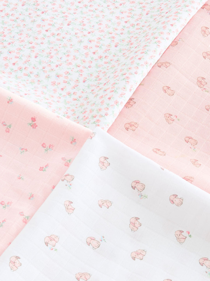 Pink Bunny Baby Muslins Cloths 4 Pack