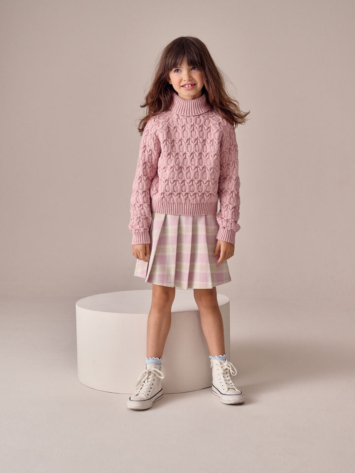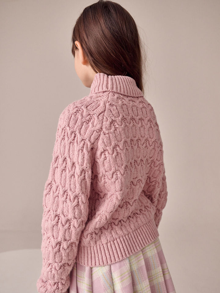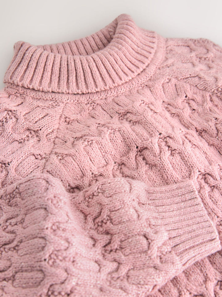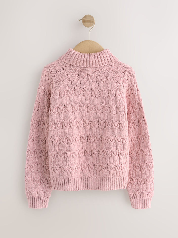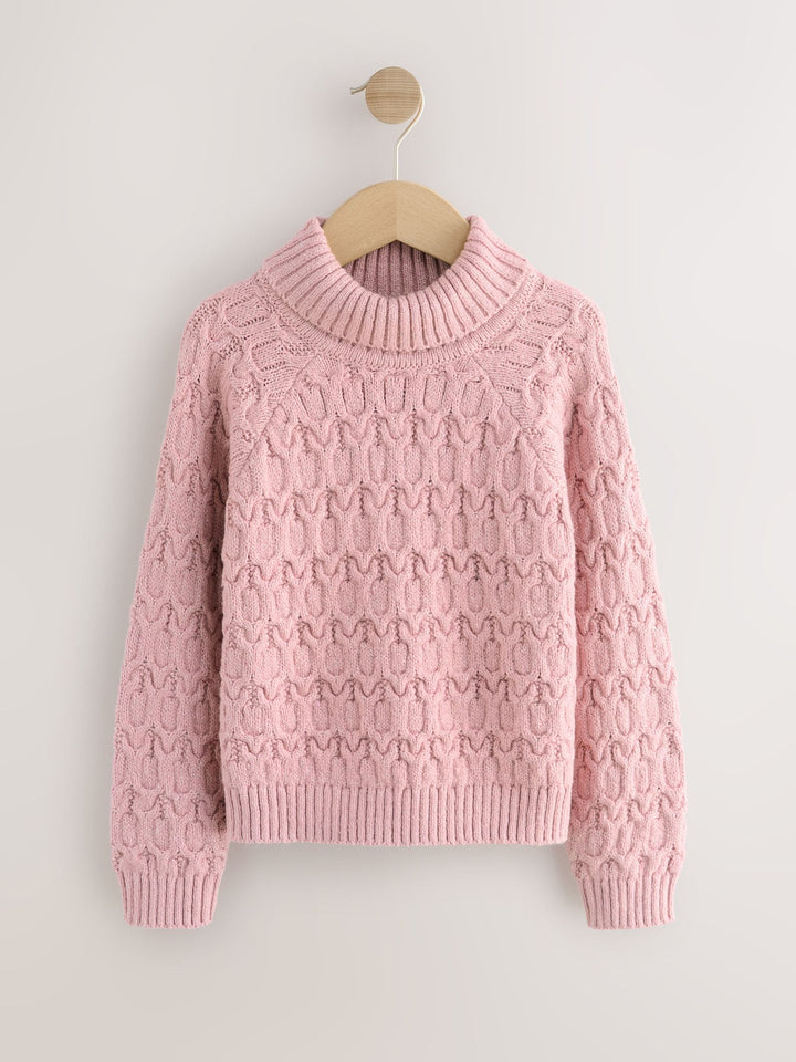 Pink Cable Roll Neck Jumper (3-16yrs)