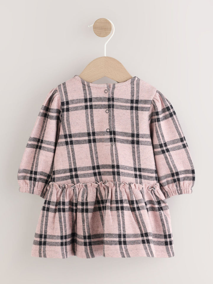Pink Check Baby Long Sleeve Tiered Dress with Tights (0mths-2yrs)