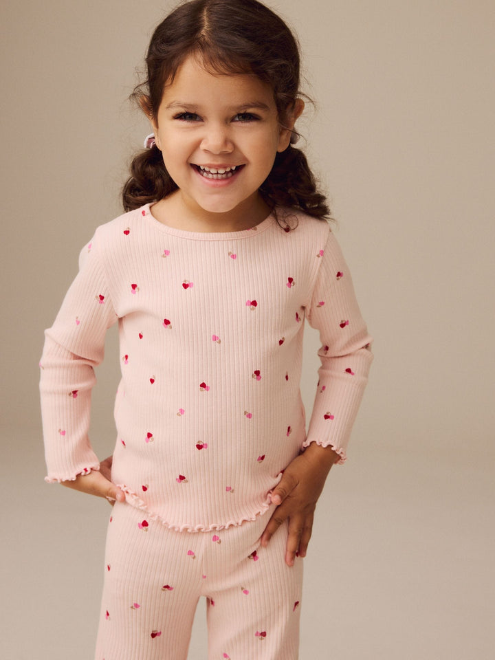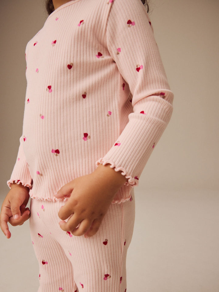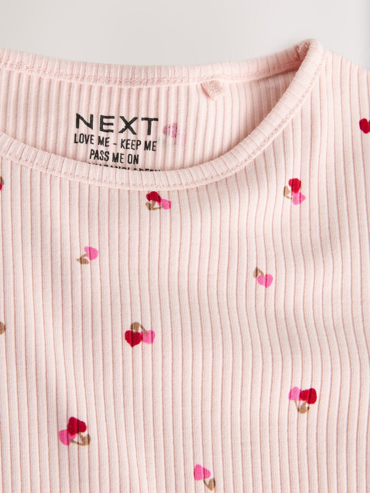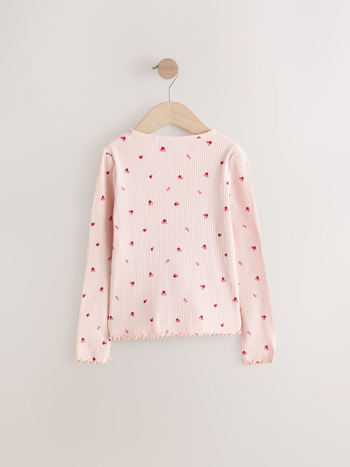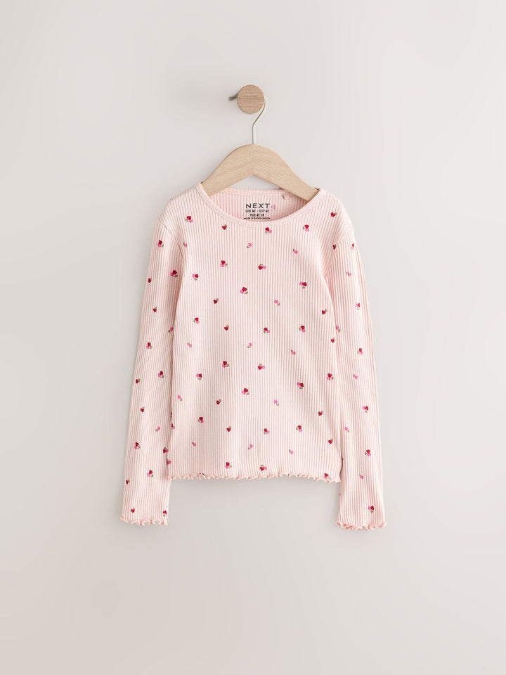 Pink Cherry Hearts Rib Long Sleeve T-Shirt (3mths-7yrs)