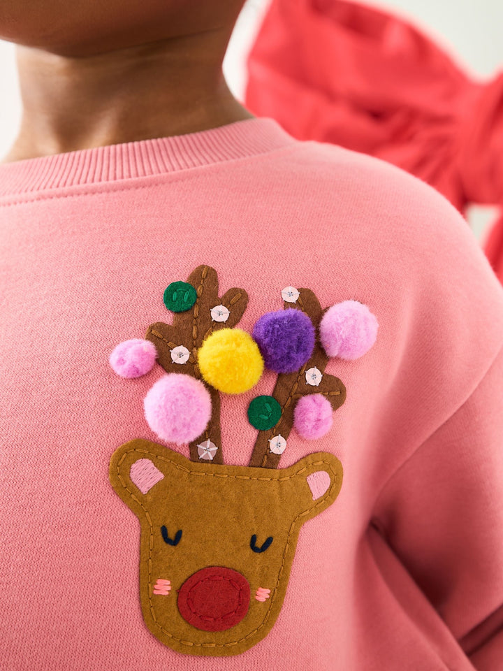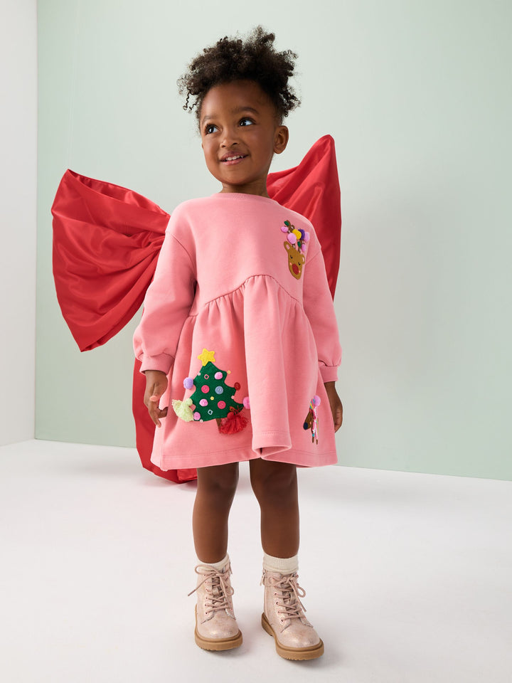 Pink Christmas Embellished Sweat Dress (3mths-7yrs)