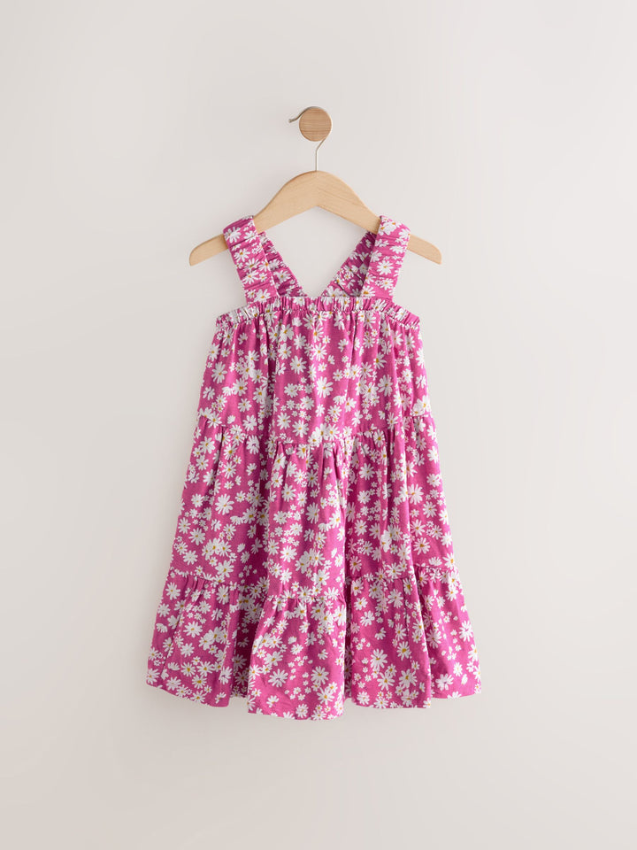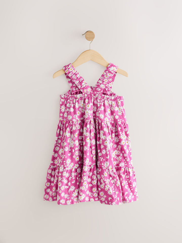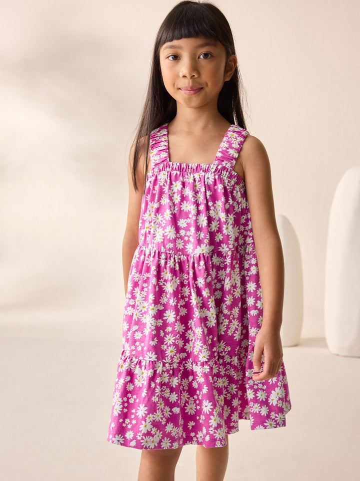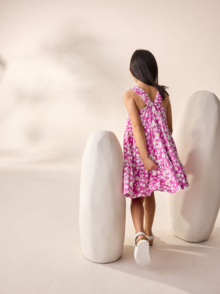 Pink Floral 100% Cotton Ruched Strap Sundress (3-16yrs)