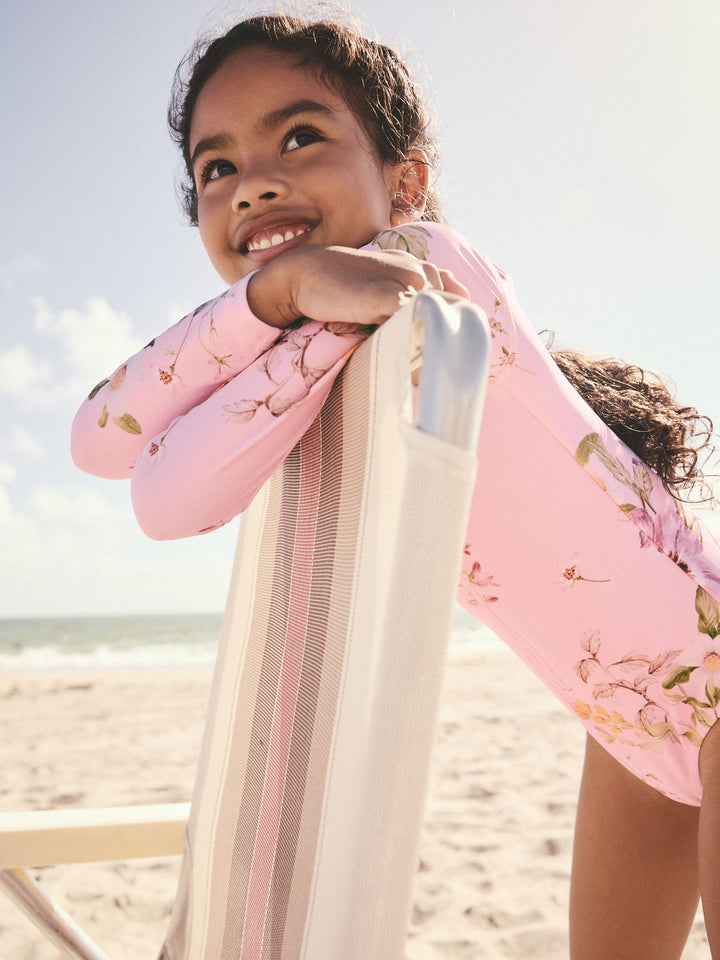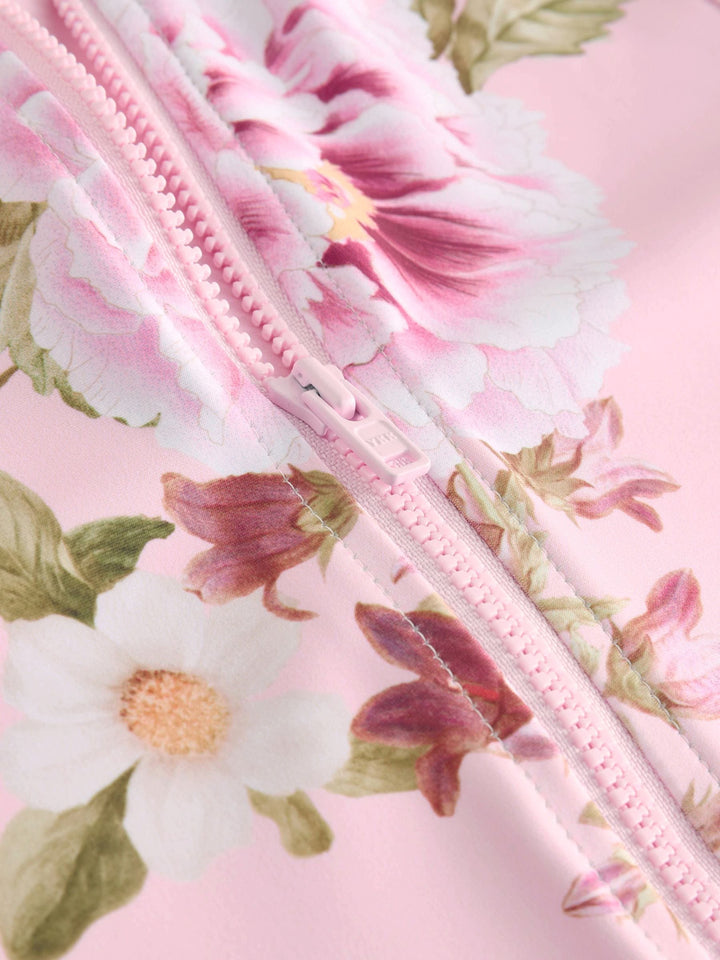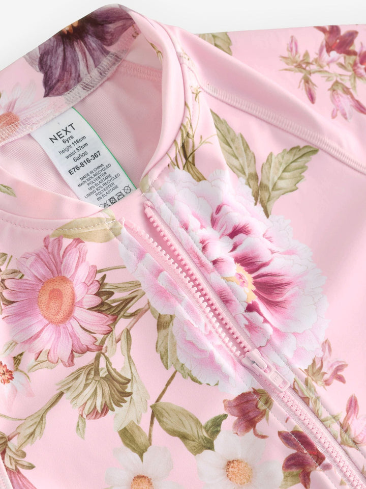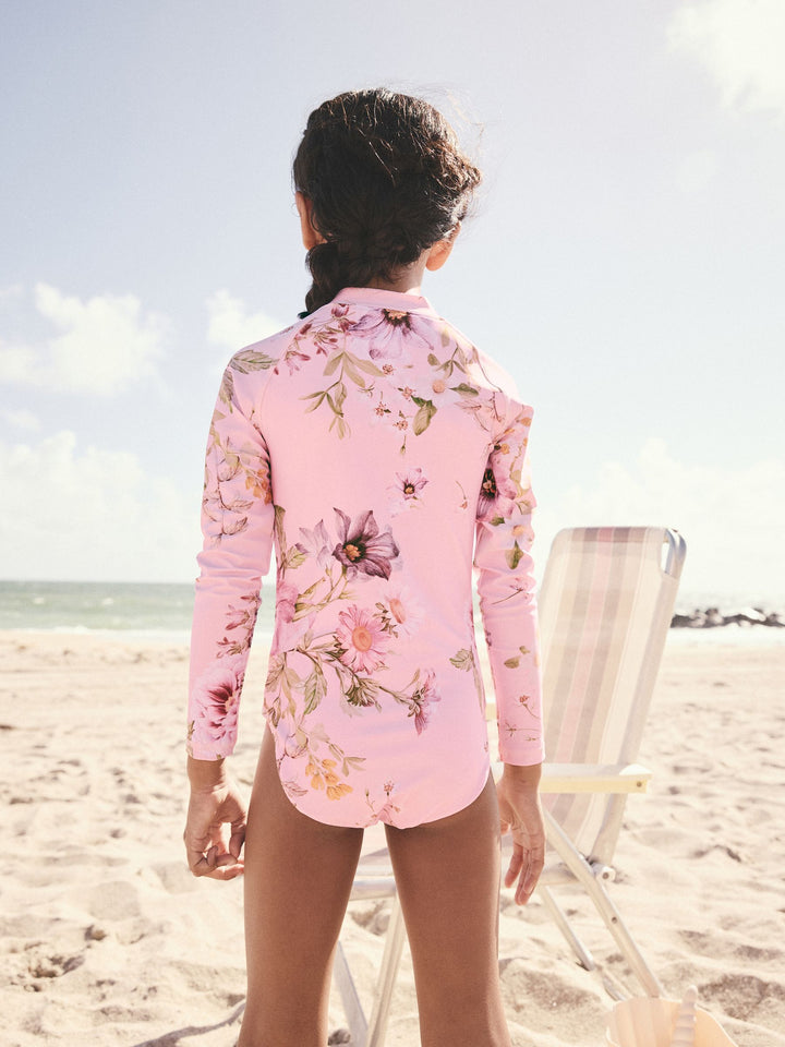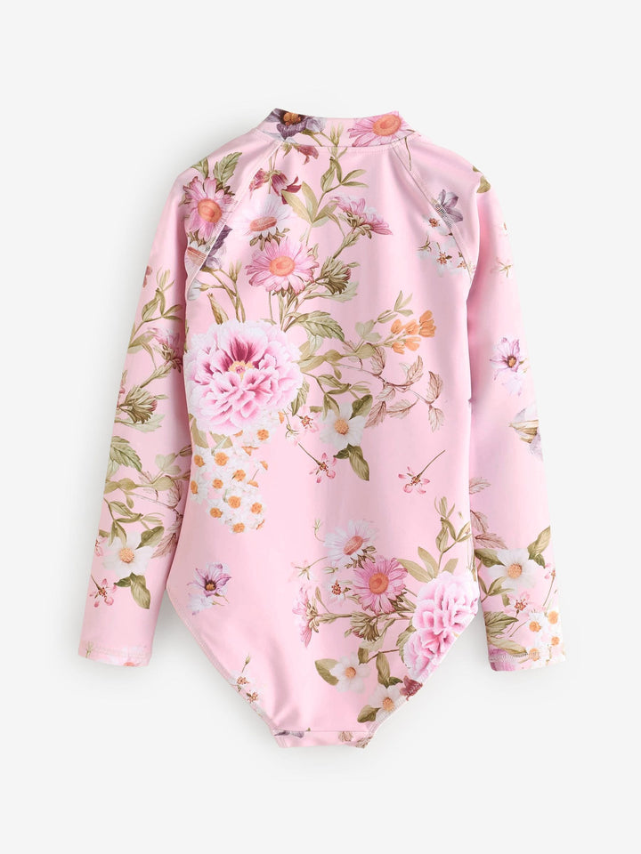 Pink Floral Long Sleeve Sunsafe Swimsuit (3-16yrs)