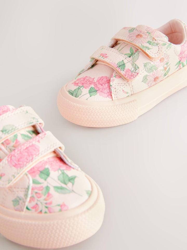 These timeless and easy-to-wear pink floral print trainers have a dual touch strap fastening with a synthetic leather upper, featuring a textile lining and a durable slip-resistant sole. Wide (G) fit Dual touch fastened straps Synthetic upper Textile lining Slip-resistant durable sole Upper - Other Materials, Lining & Sock - Textile, Sole - Other Materials. Country of Origin: Vietnam