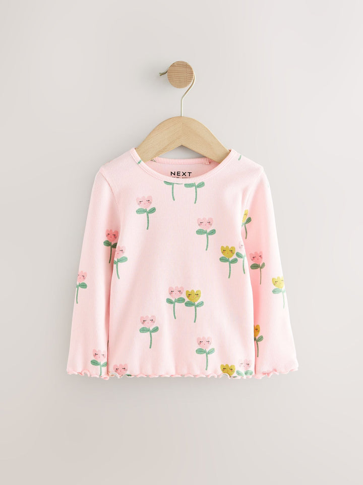 Pink Flower Character Rib Long Sleeve T-Shirt (3mths-7yrs)