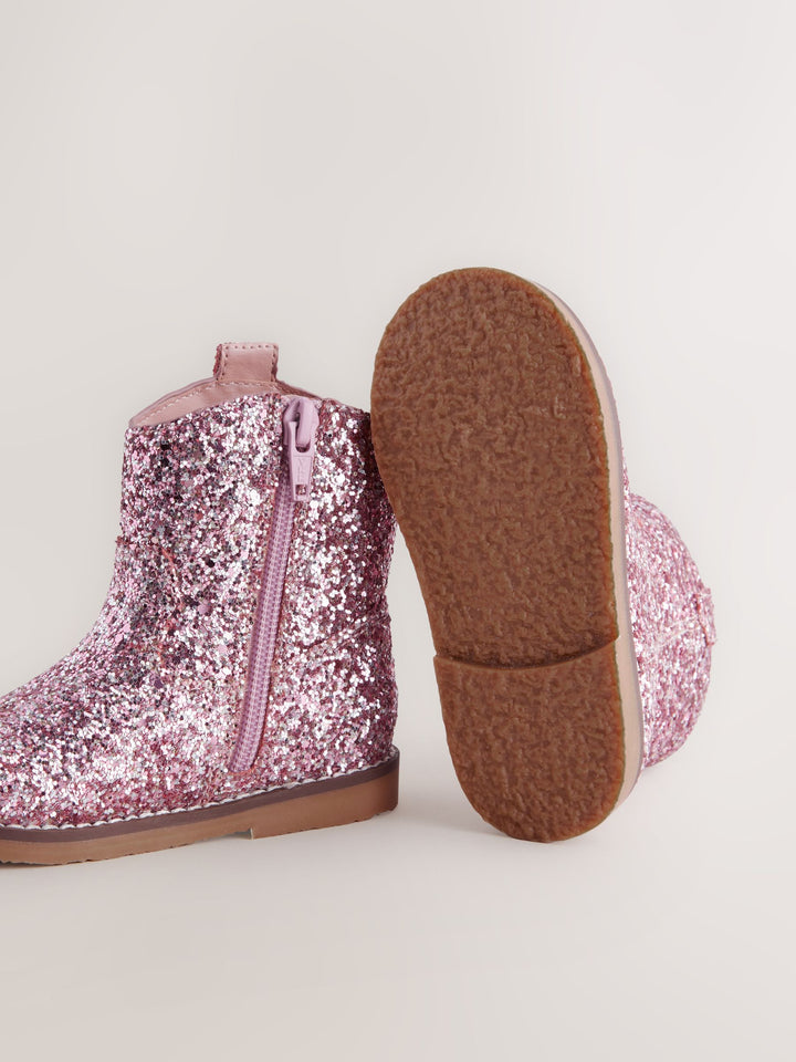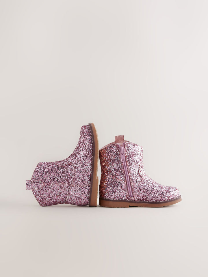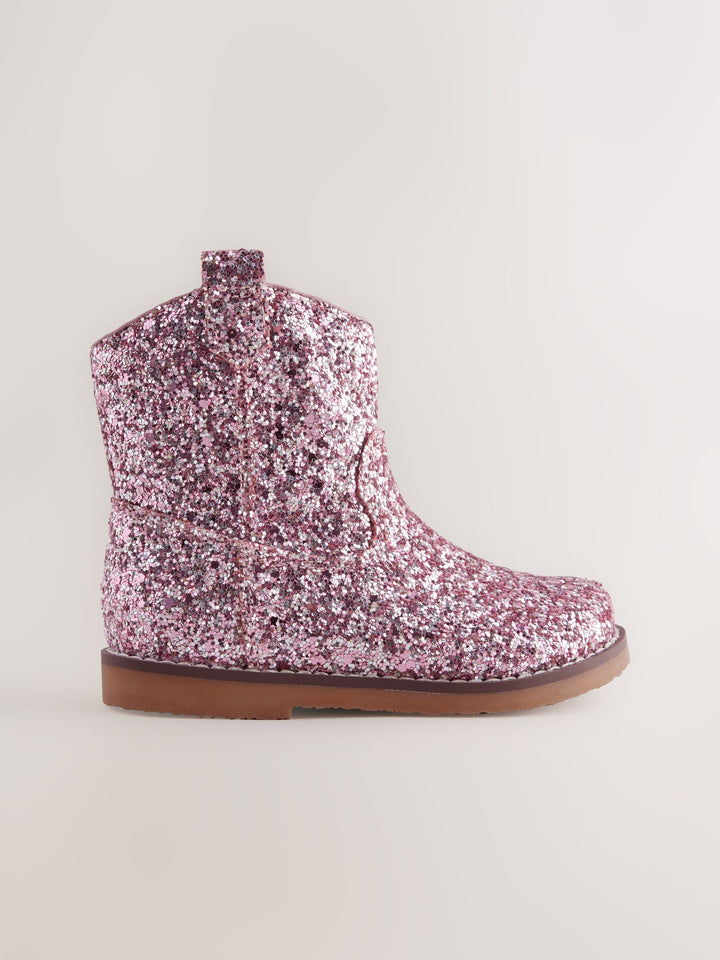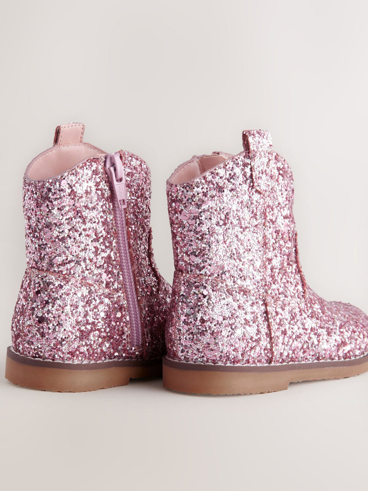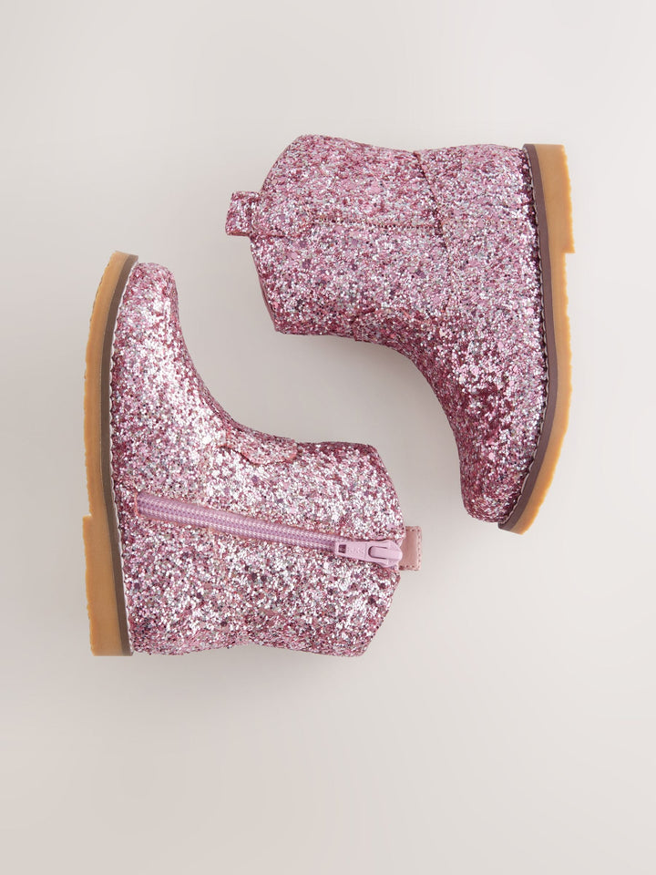 She'll love these pink glitter Western-inspired boots with a hint of Yee-Haw, featuring a faux leather upper with stitched detailing and a comfortable lining, sat atop a durable slip-resistant outsole. Western-inspired Faux leather upper Stitched detailing Zip fastening Slip-resistant outsole Upper - Textile, Lining & Sock - Other Materials, Textile, Sole - Other Materials. Country of Origin: China