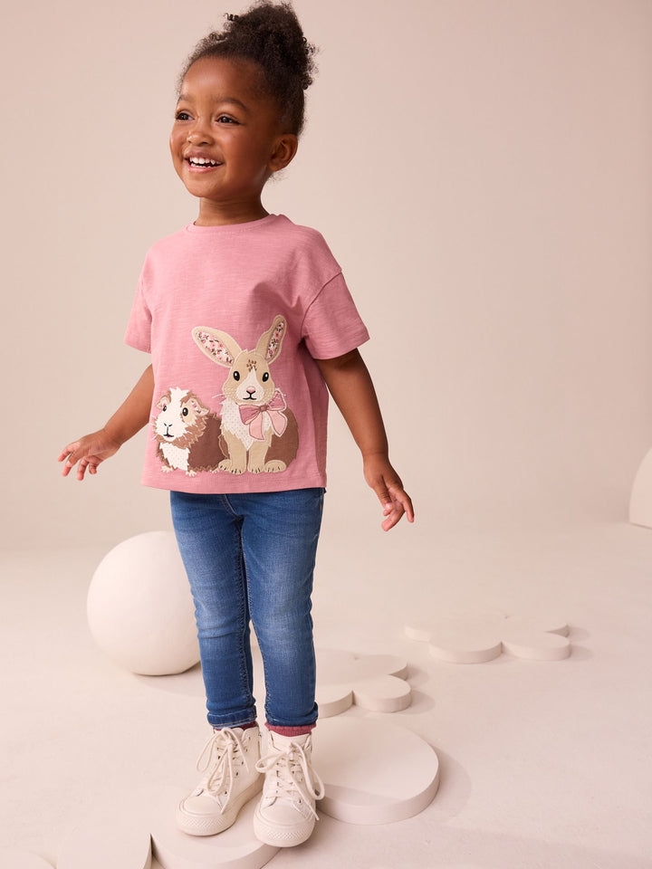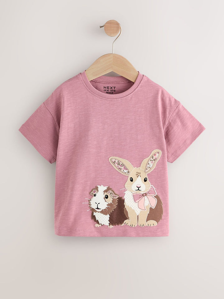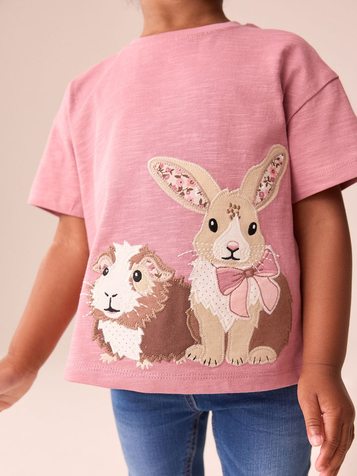 Pink Guinea Pig and Bunny Character Short Sleeve T-Shirt (3mths-7yrs)