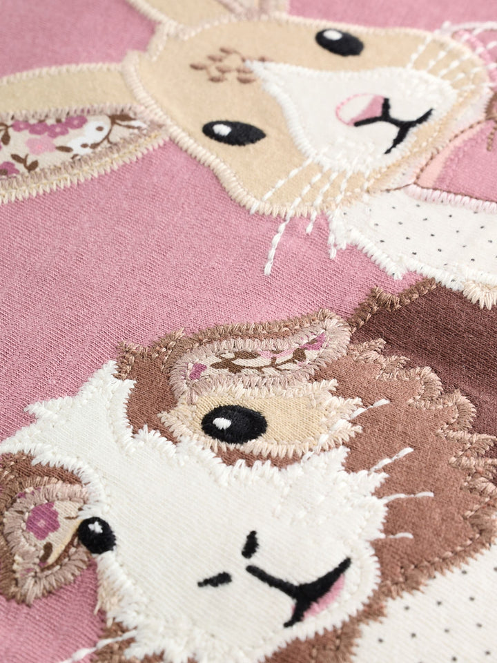 With an adorable stitched design of a Guinea pig and a bunny rabbit to the front, this short sleeve t-shirt is equal parts comfortable and cute, set against a light pink pure-cotton base. 100% cotton Stitched graphics Crewneck collar Machine washable. 100% Cotton. Country of Origin: India