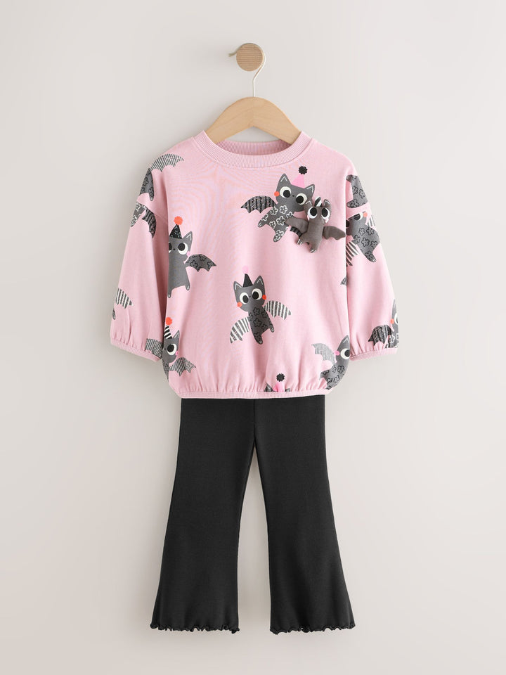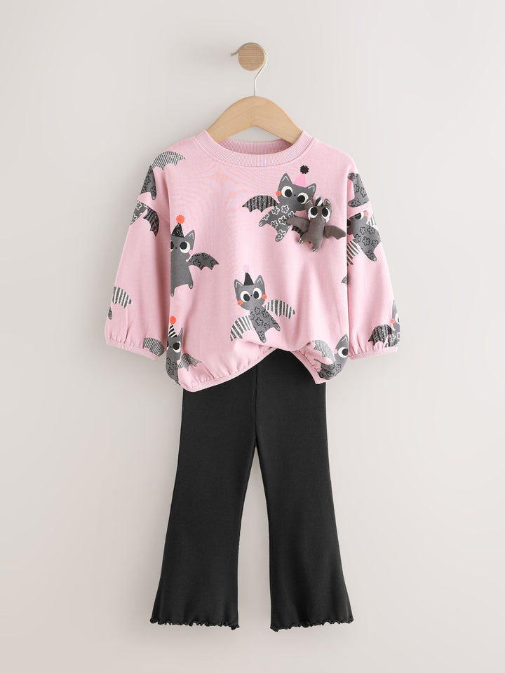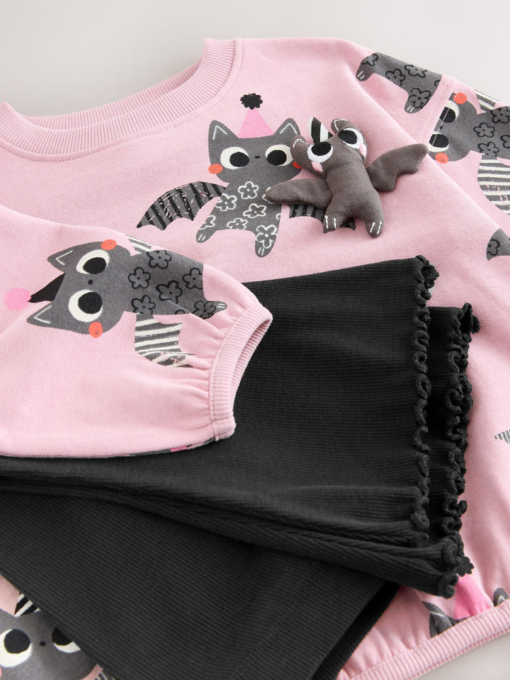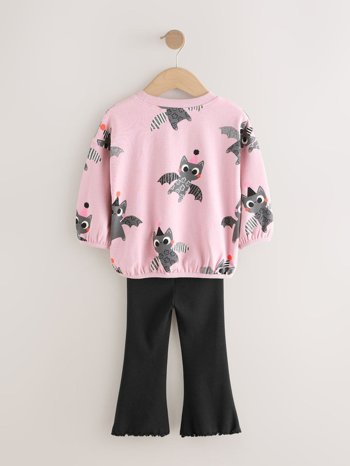 Pink Halloween Padded Bat Long Sleeve Top and Flare Set (3mths-7yrs)