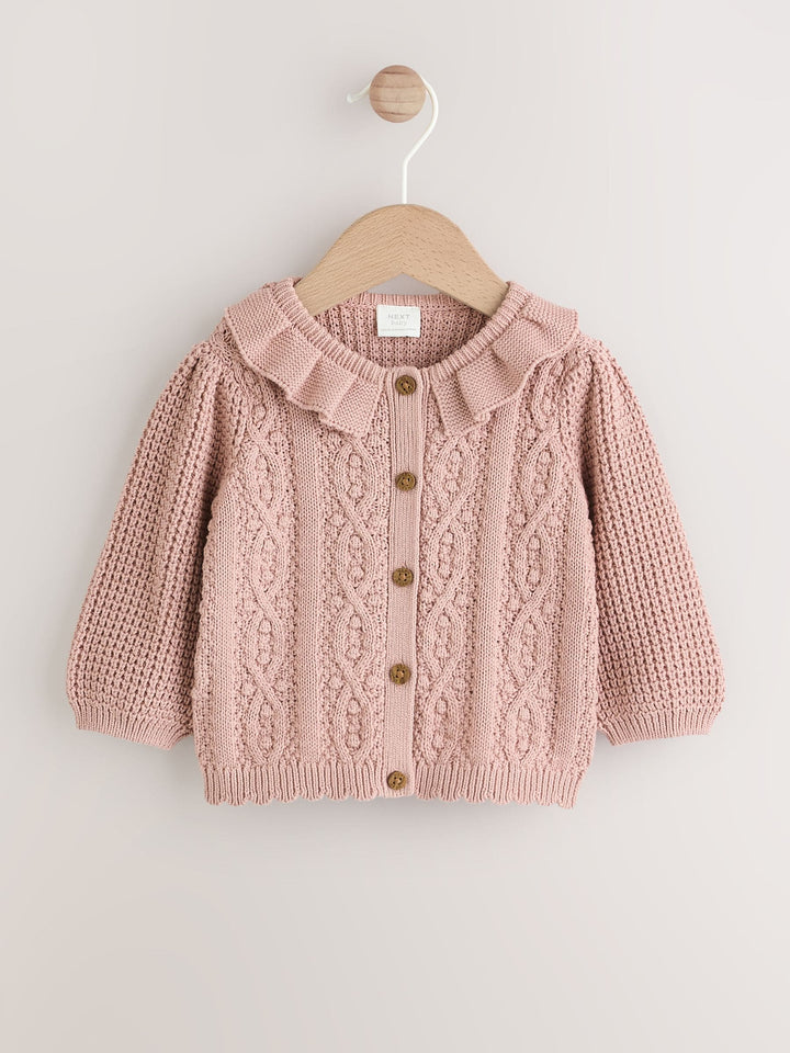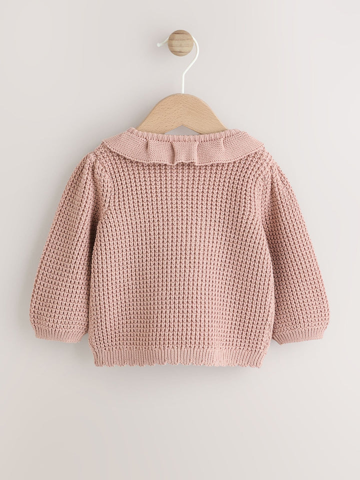 Pink Knitted Frill Collar Baby Cardigan (0mths-2yrs) (0mths-2yrs)