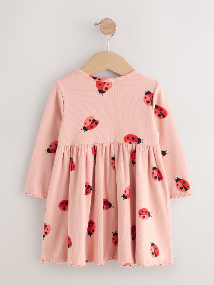 Pink Ladybird Long Sleeve Ribbed Dress (3mths-7yrs)