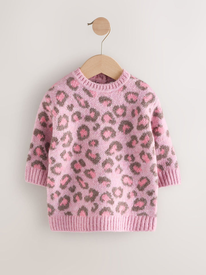 Pink Leopard Print Jumper Dress (3mths-7yrs)