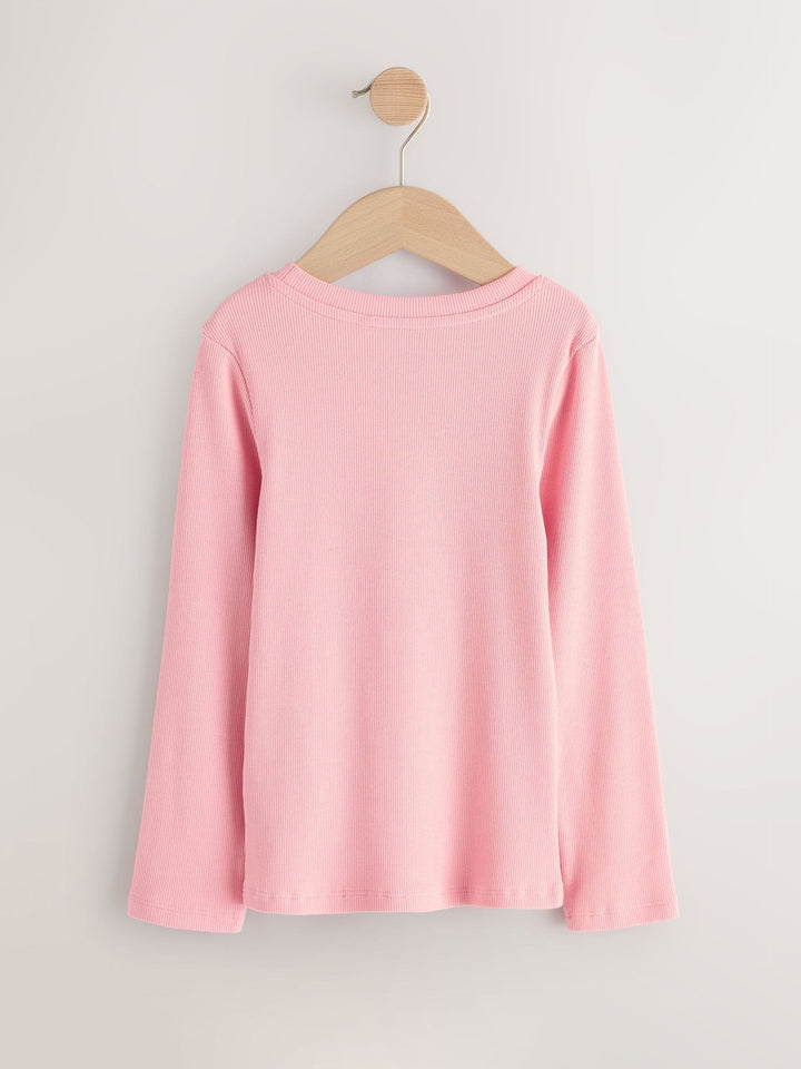 Pink Long Sleeve Ribbed Tops 3 Pack (3-16yrs)