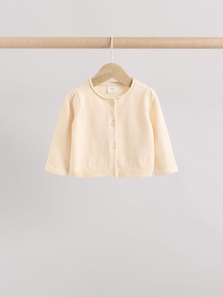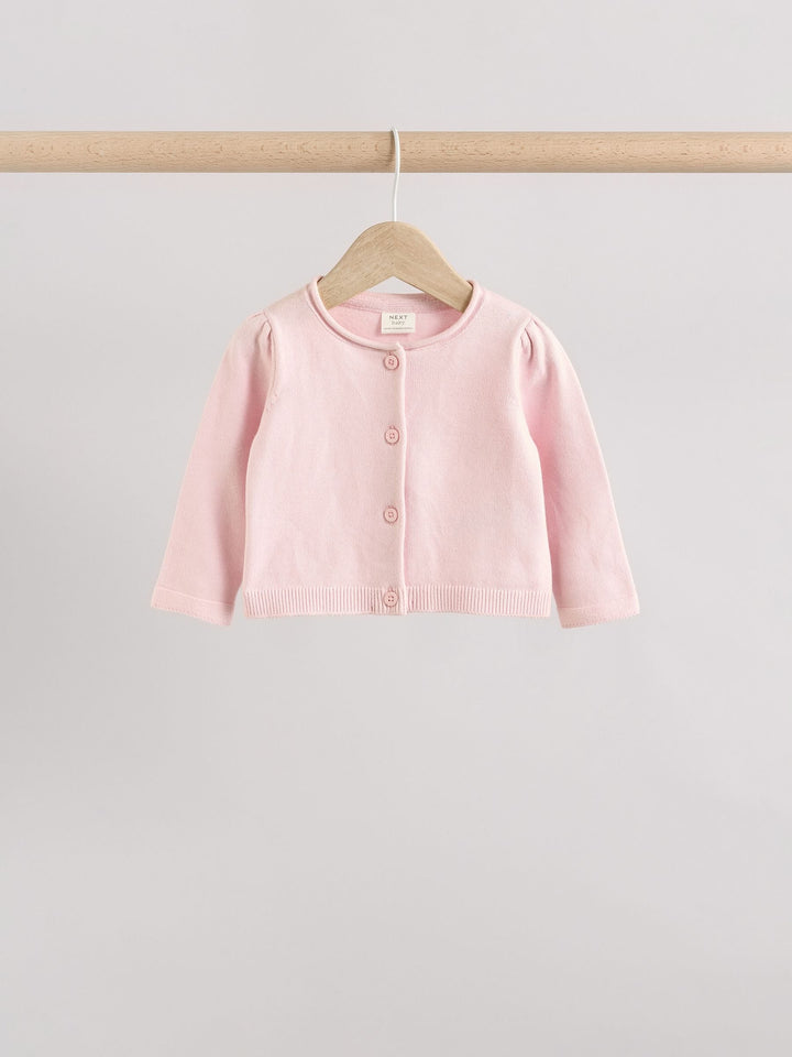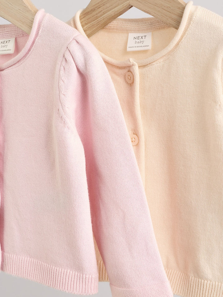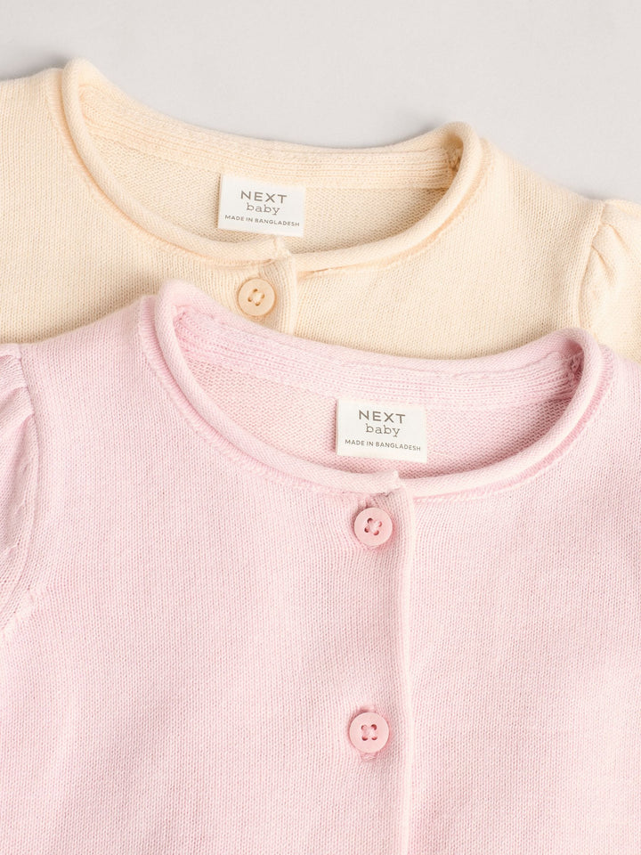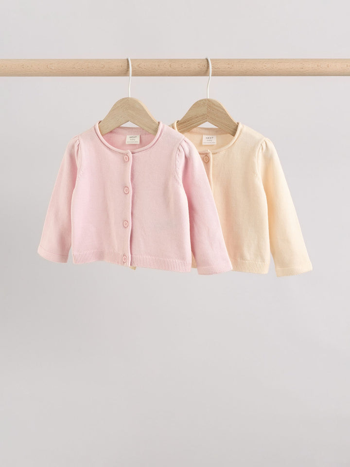 This cute and cosy 2-pack of pink and yellow cardigans are ideal for their textured seasonal outfits, made from pure cotton with a button-up fastening, a round collar and ribbed trims. 2-pack 100% cotton Round collar Ribbed hems Machine washable. 2 x Cardigan 100% Cotton. Country of Origin: Bangladesh Warning: Keep away from fire and flames.