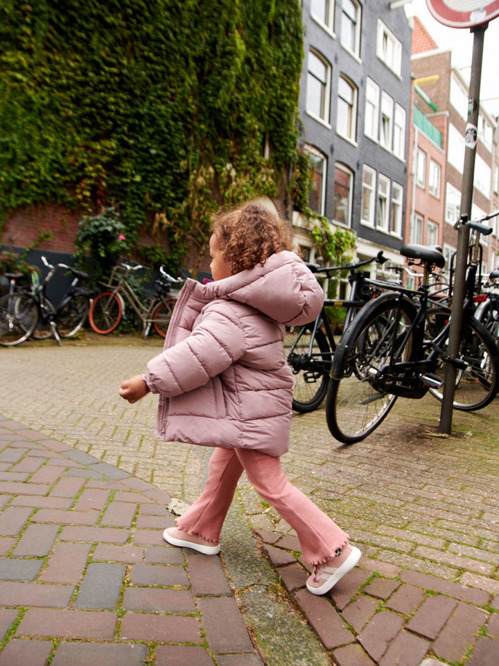 Our adorable padded pink coat is designed to keep your little one in comfort and style even when the temperatures drop. Made from a lightweight polyester, padded and lined with fleece, this coat is the definition of cosy and it is shower resistant too to protect her against the elements. It is secured with a zip fastening down the front and it boasts pockets on the sides along with a hood to keep her head warm. She will love going outside in this charming coat. Shower resistant Padded Hooded Fleece lining Slant welted pockets Zip fastening at the front Machine washable. Main 100% Recycled polyester. Lining 100% Recycled polyester. Wadding 100% Recycled polyester. Country of Origin: Bangladesh