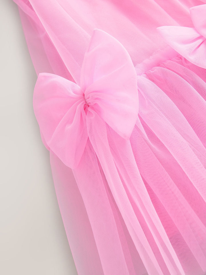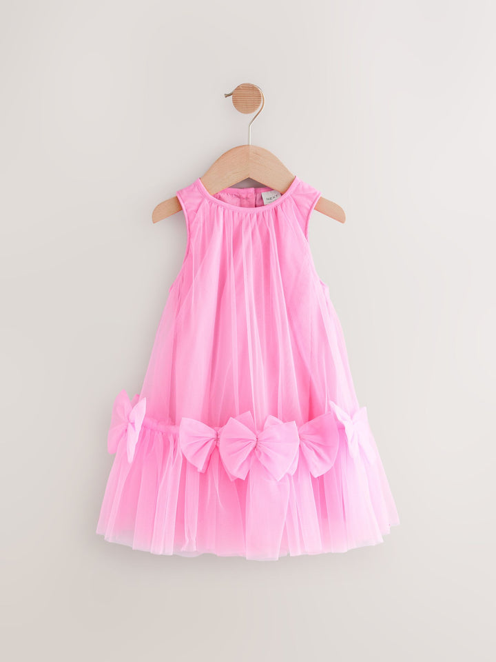 Pink Sleeveless Bow Mesh Dress (3mths-7yrs)