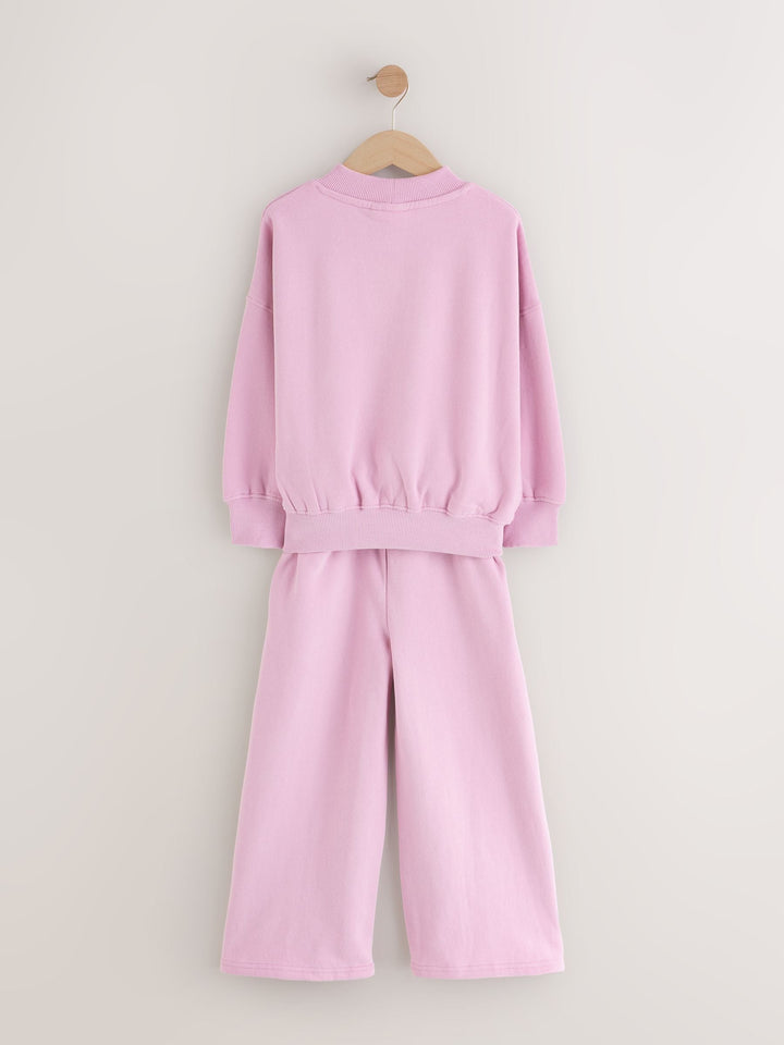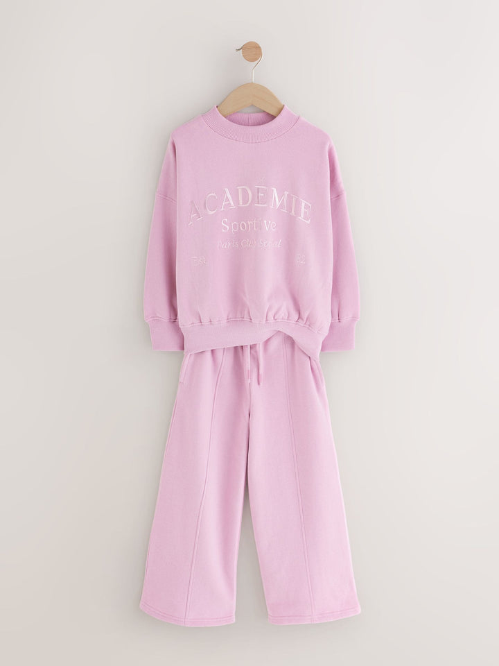 Pink Slogan Sweatshirt And Wide Leg Joggers Set (3-16yrs)