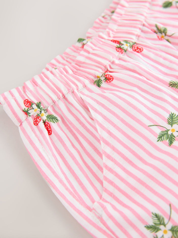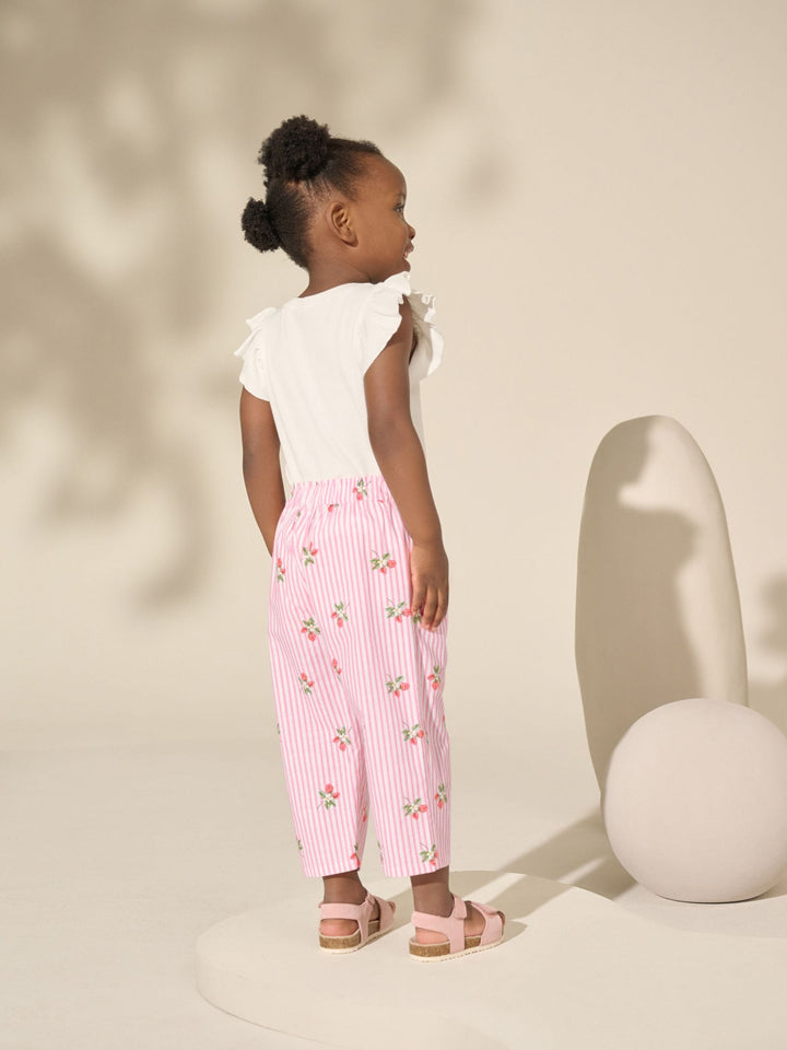 Elevate their summer looks with these pink strawberry print pull-on trousers. Made from pure cotton and cut in a trendy barrel shape, these fully elasticated bottoms are complete with pockets and coated a pretty stripe pink with strawberry detailing. 100% cotton Elasticated pull-on waistband Pockets Barrel fit 100% Cotton. Country of Origin: India