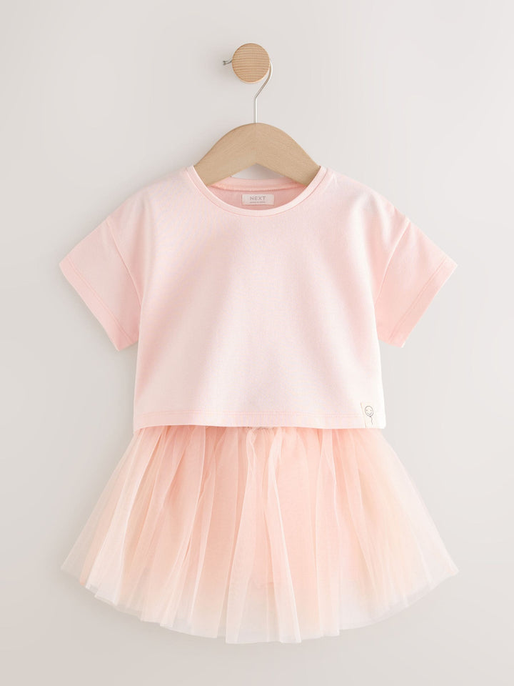 Your little one will love this 2-piece set, featuring a short-sleeve cotton T-Shirt, alongside a flowy tutu skirt for a ballerina look. 2-piece set Cotton T-Shirt Crewneck collar Tutu skirt Machine washable. T-shirt 100% Cotton. Skirt Mesh 100% Nylon. Lining 92% Cotton, 8% Elastane. Country of Origin: India