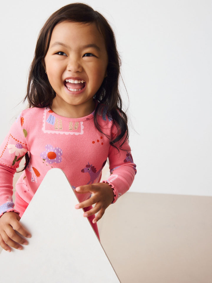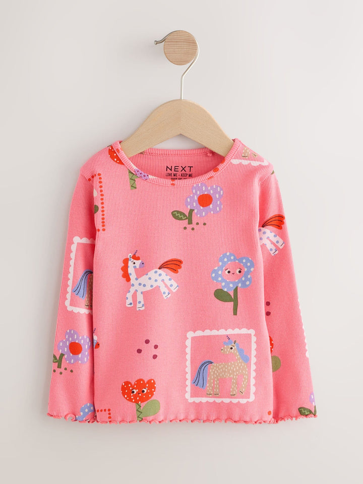 Pink Unicorn Rib Long Sleeve T-Shirt (3mths-7yrs)
