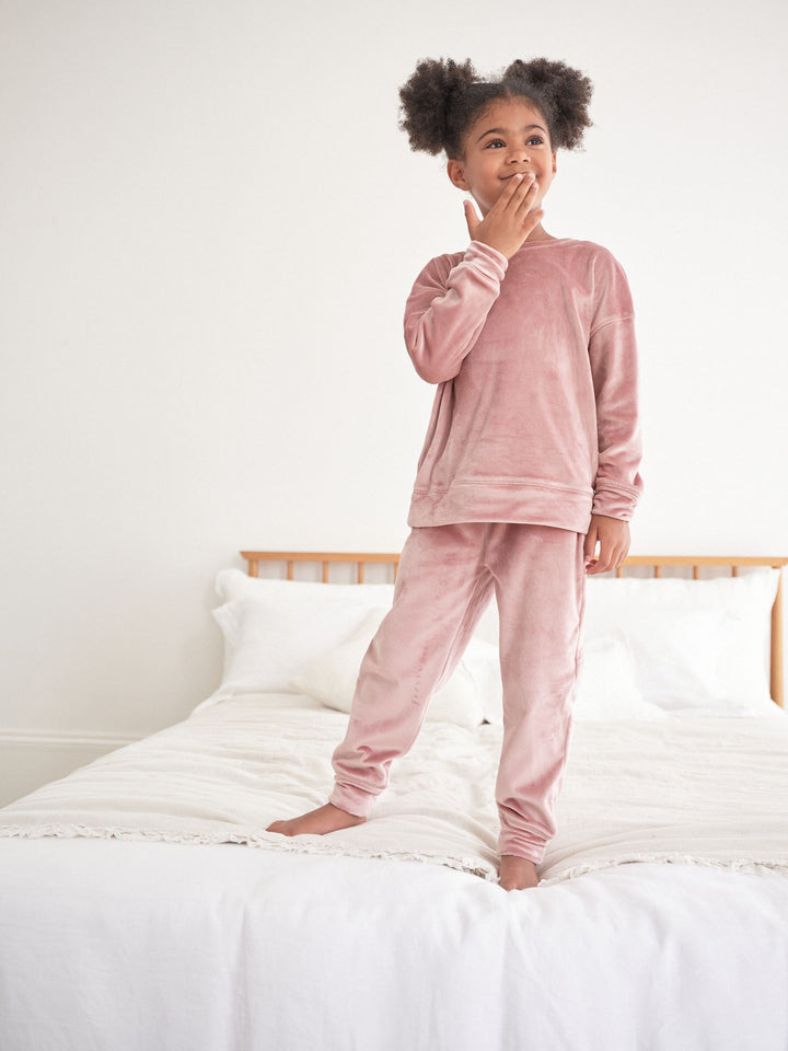 Loungewear with sass and personality. This pink velour lounge set is sure to make it onto their favourite pile. Made from soft touch fleece with a dropped shoulder for effortless cool. Matching bottoms feature a super comfy elasticated waist and cuffs. Next – Your ultimate style destination for all of life’s essentials. With quality at the heart of everything we do, Next interprets the latest trends to create modern, effortless, easy-to-style pieces for your home and wardrobe. The hottest brands and the latest trends: find them all here. Machine washable. Sweater Pyjama Top and Trouser Pyjama Bottom 95% Polyester, 5% Elastane. Country of Origin: China