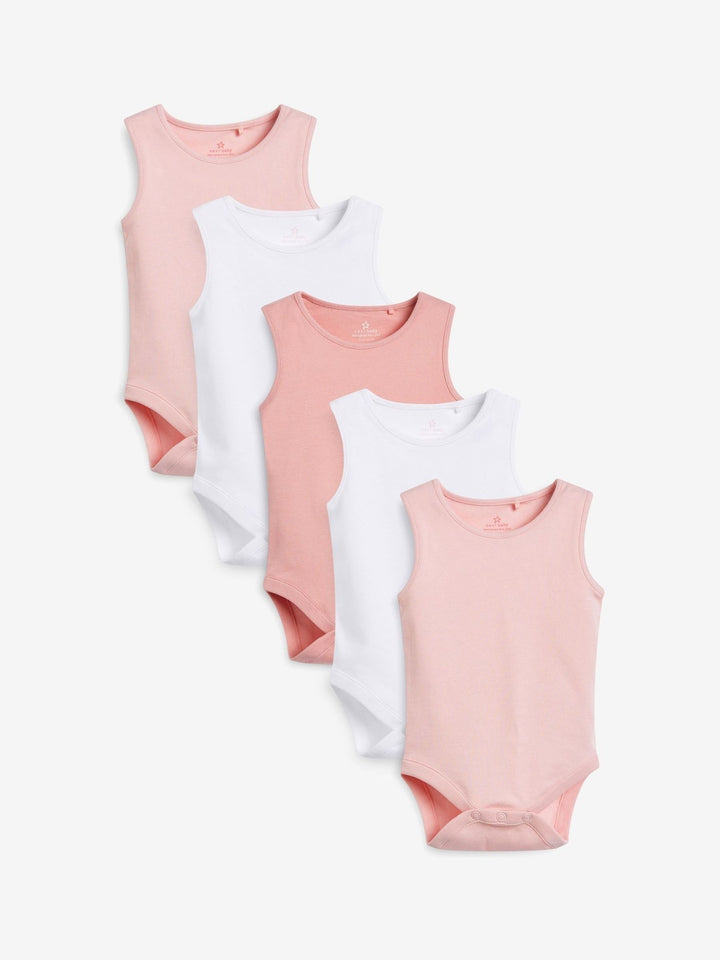 Pink/White 5 Pack 7 Pack Essential Vest Baby Bodysuits