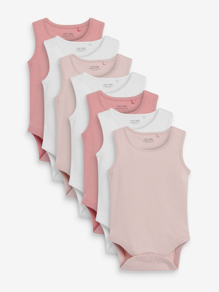 Pink/White 7 Pack 7 Pack Essential Vest Baby Bodysuits