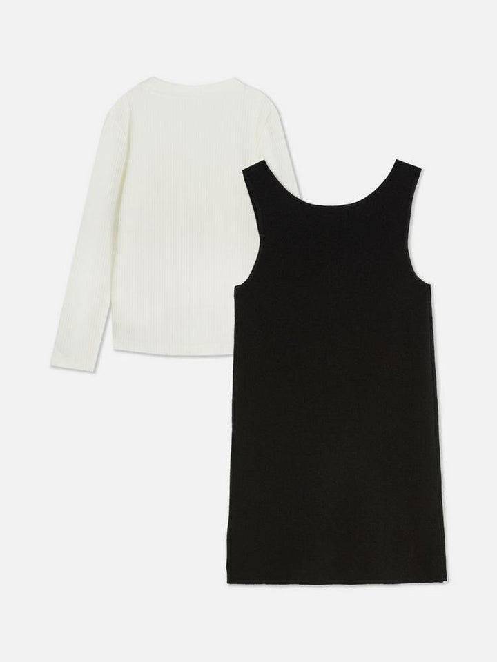 Primark Long Sleeve T-Shirt and Bow Pinafore Dress Set