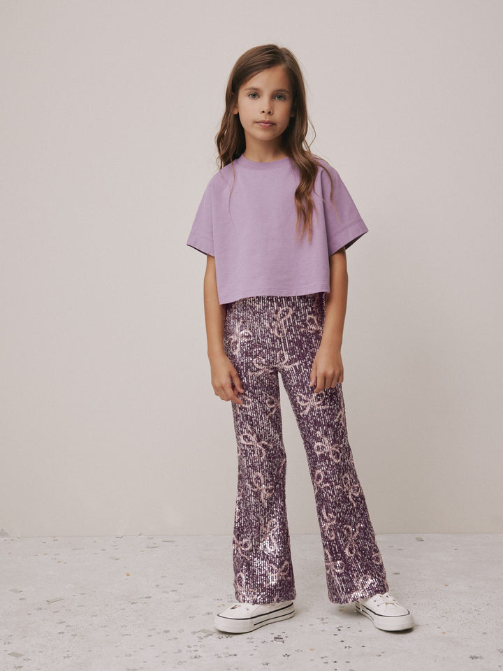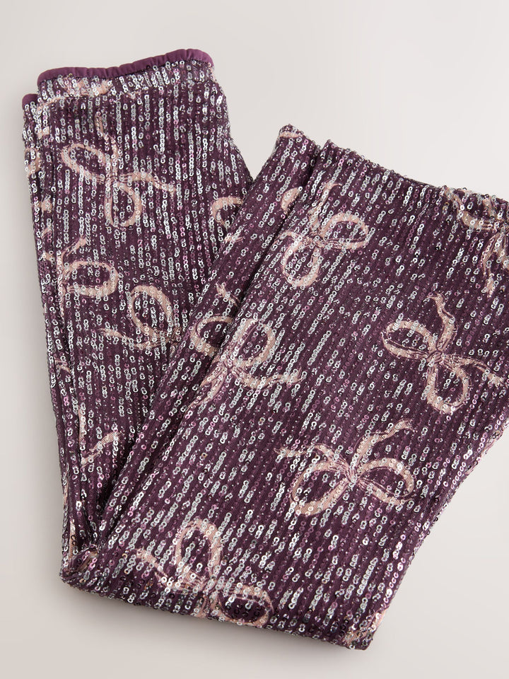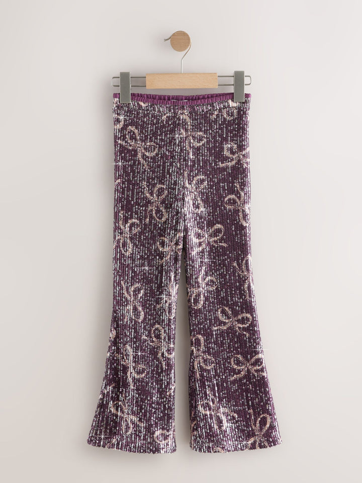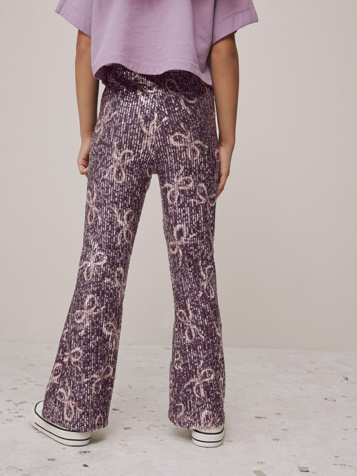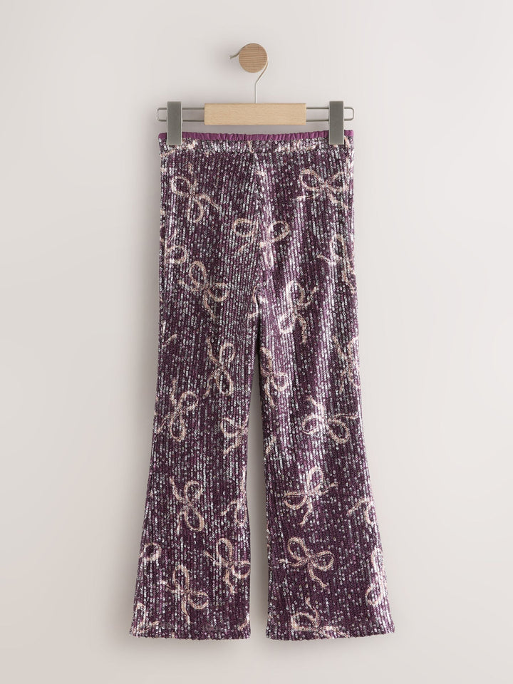 Purple Bow Sequin Party Flared Leggings (3-16yrs)