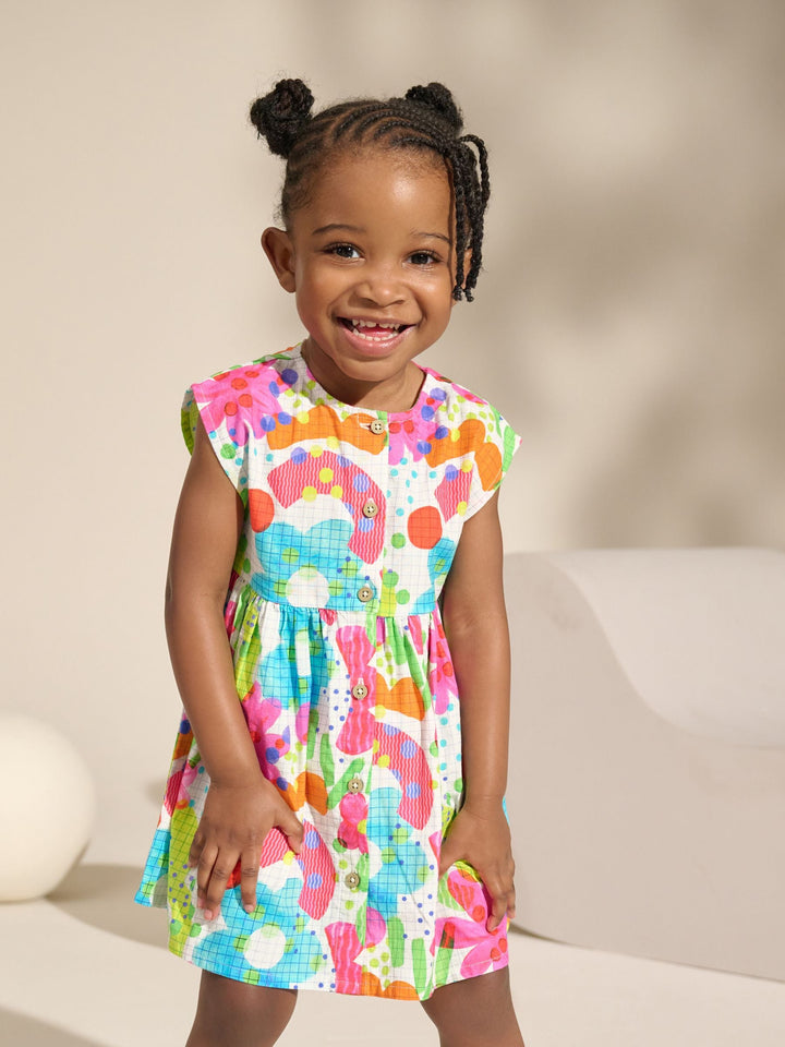 Rainbow Doodle Button Through Summer Dress (3mths-10yrs)